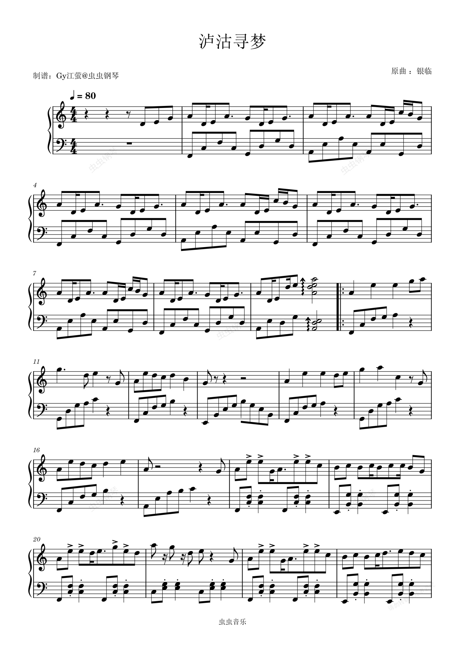 钢琴谱:泸沽寻梦-银临 C调钢琴谱