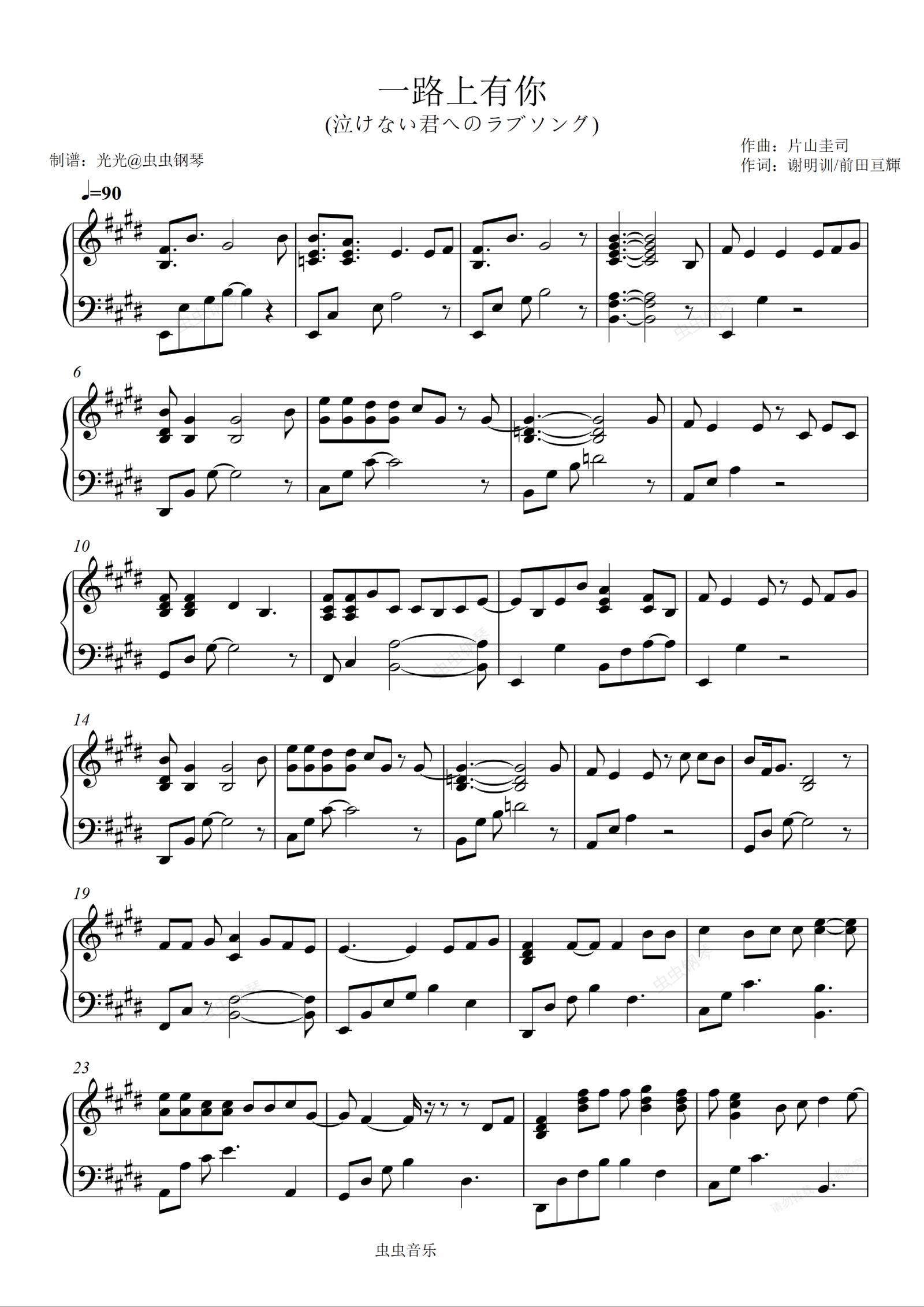 钢琴谱:一路上有你(泣けない君へのラブソング)
