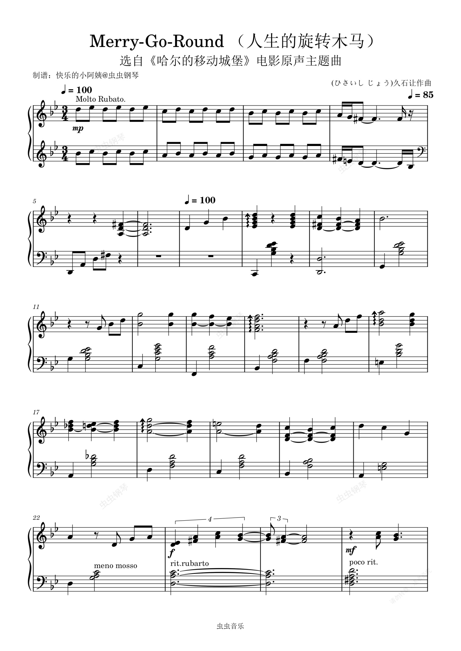 钢琴谱:Merry-Go-Round(人生的旋转木马) - 久石让