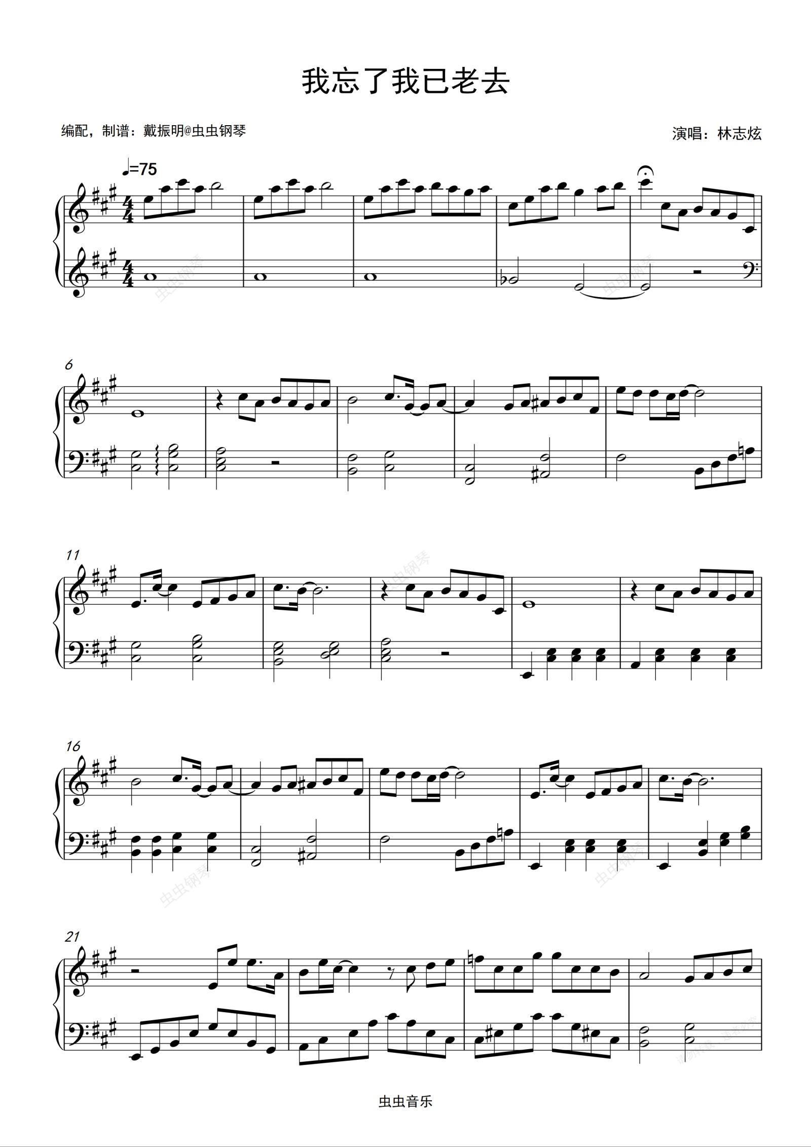 钢琴谱:林志炫新歌《我忘了我已老去》