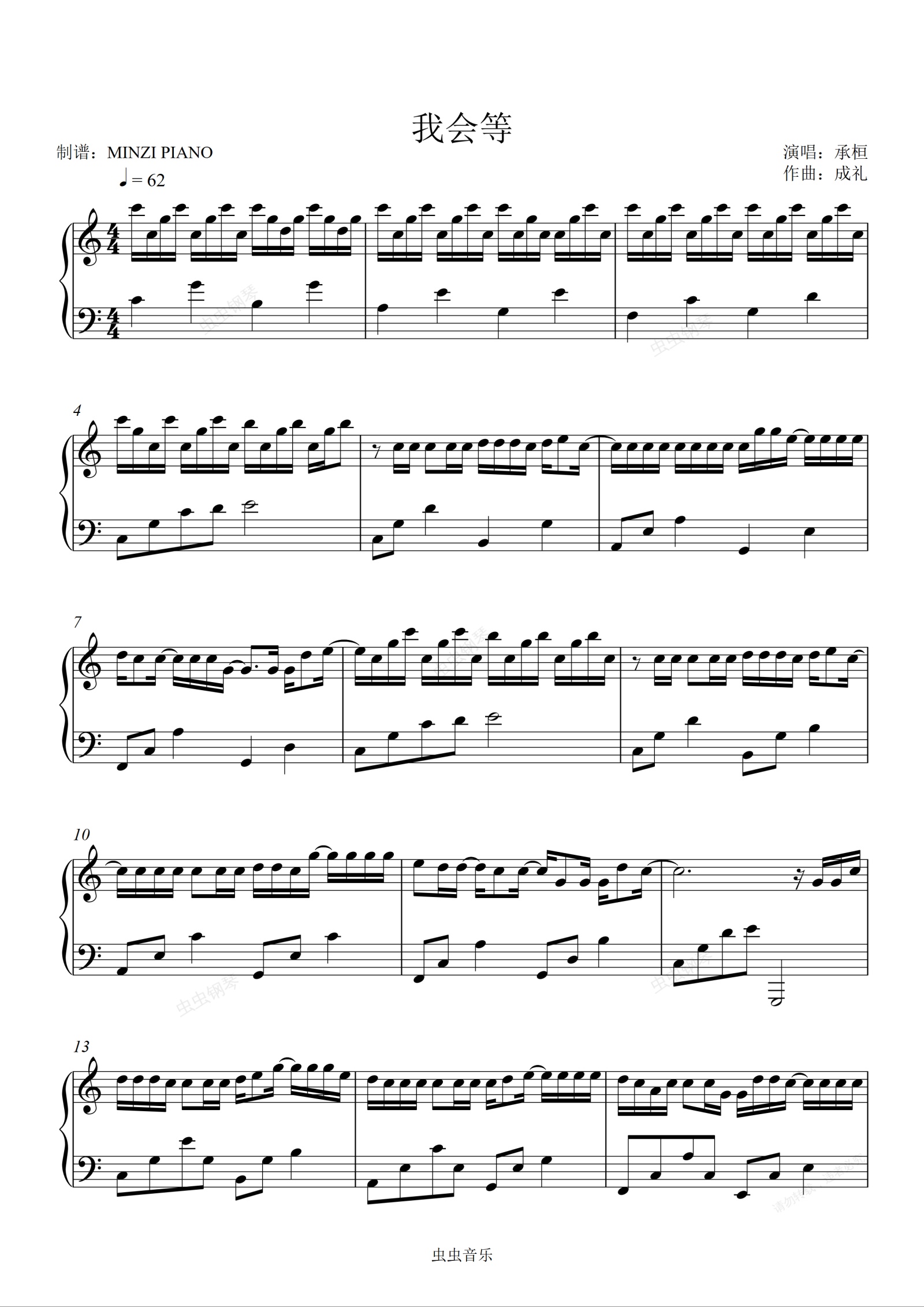 钢琴谱:《我会等》-承桓 抖音热歌 好听易弹