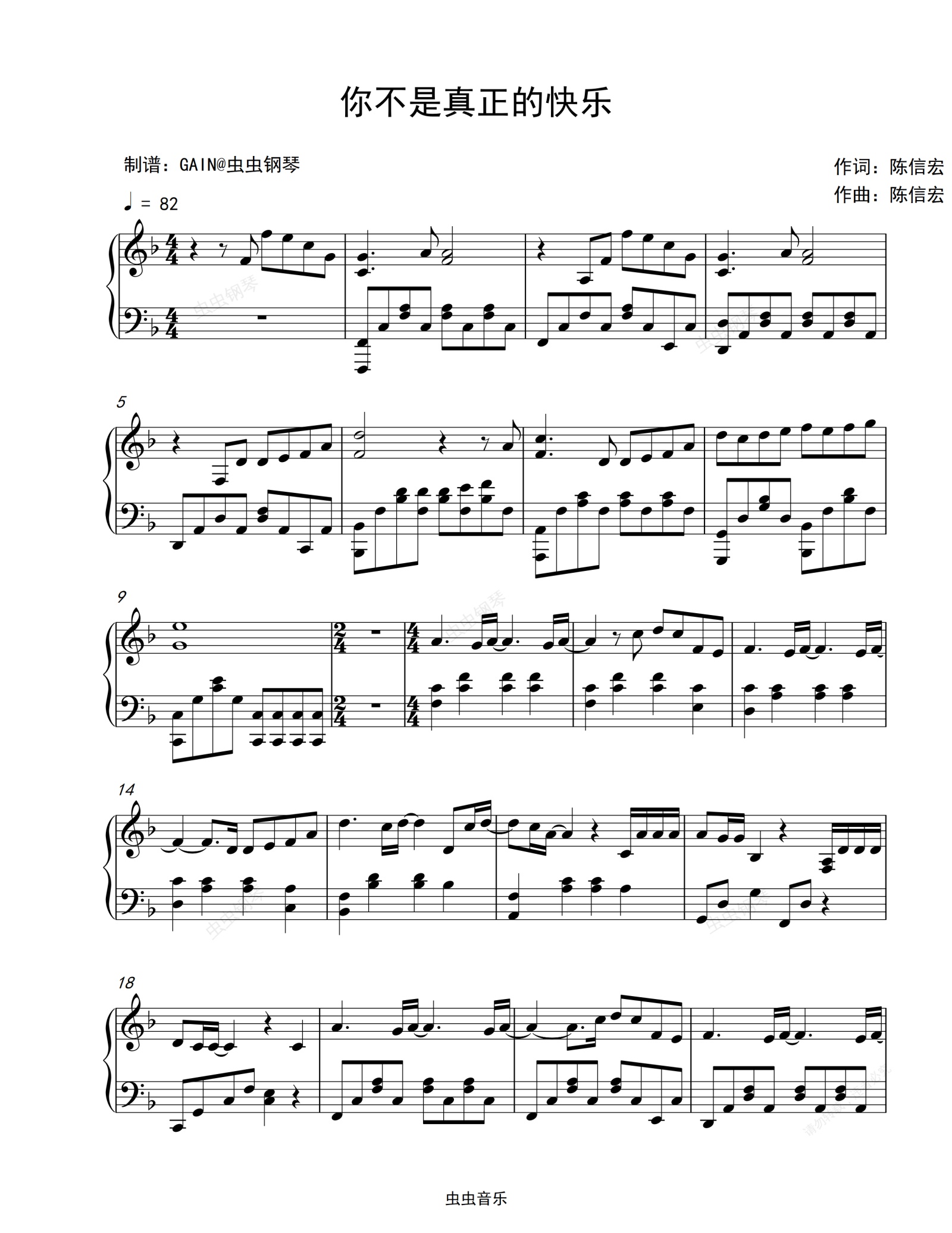 钢琴谱:你不是真正的快乐-完美独奏版-五月天