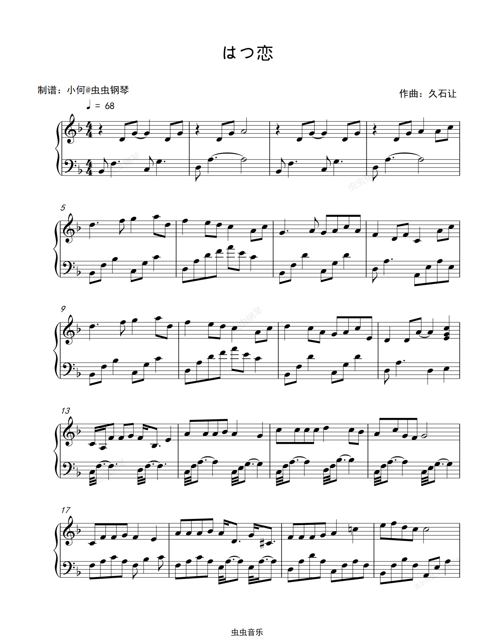 钢琴谱:はつ恋(初恋)-好听版-久石让