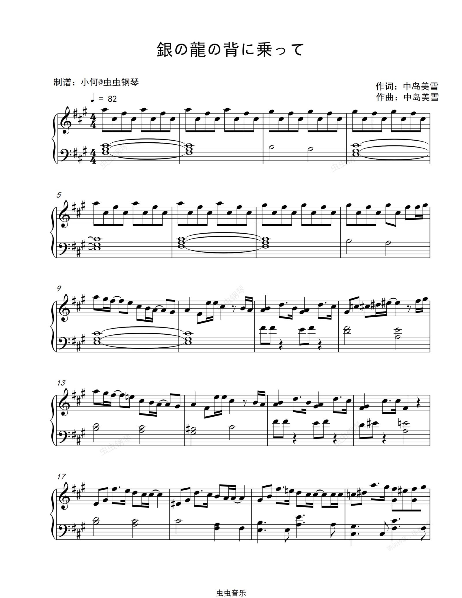 钢琴谱:銀の龍の背に乗って-骑在银龙的背上-五岛医生诊疗所主题曲-中岛美雪