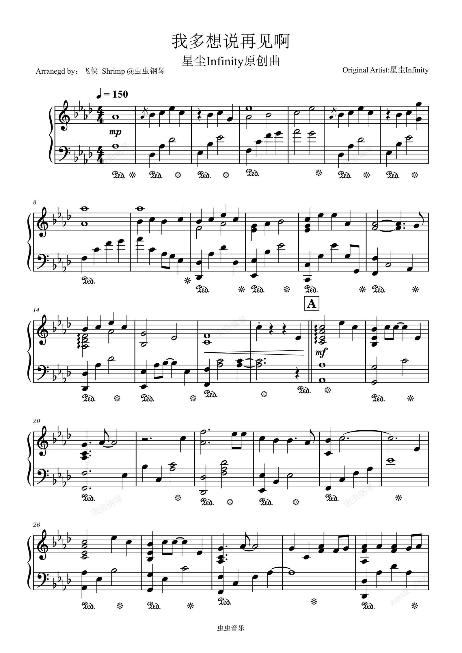 钢琴谱:我多想说再见啊(星尘Infinity原创曲)