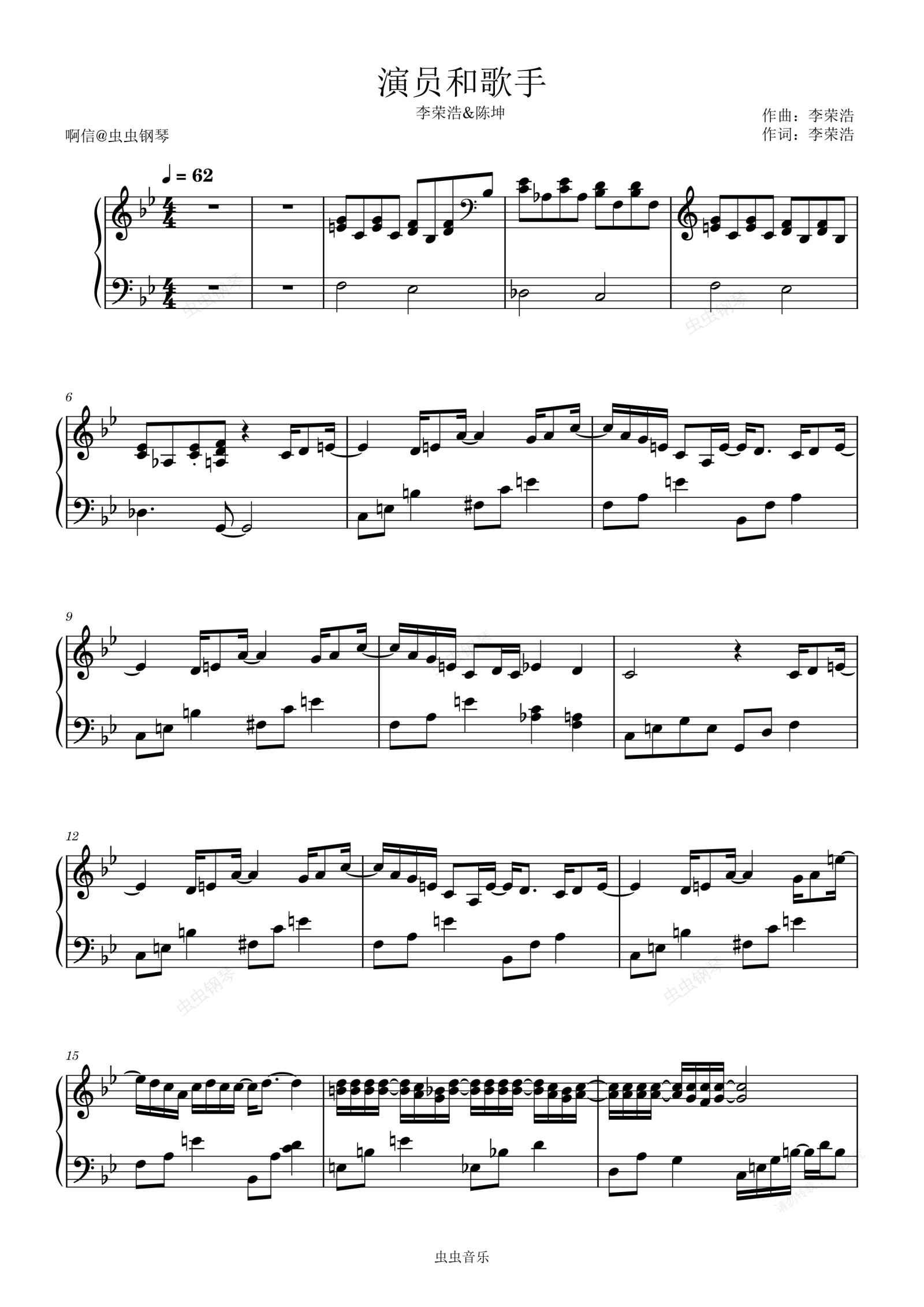 钢琴谱:李荣浩&陈坤-演员和歌手-C调-原版-啊信编配