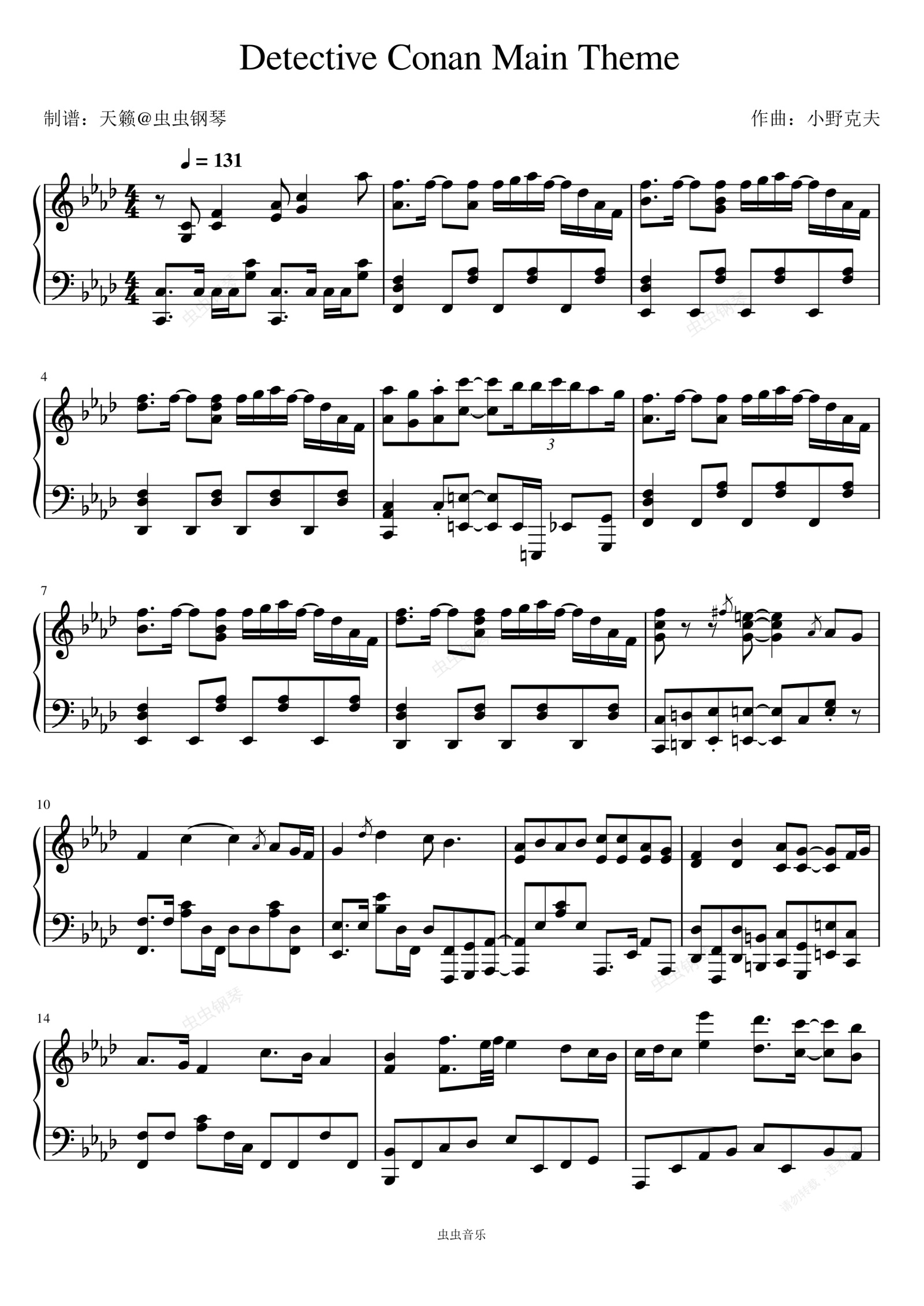 钢琴谱:Detective Conan Main Theme-小野克夫 改调