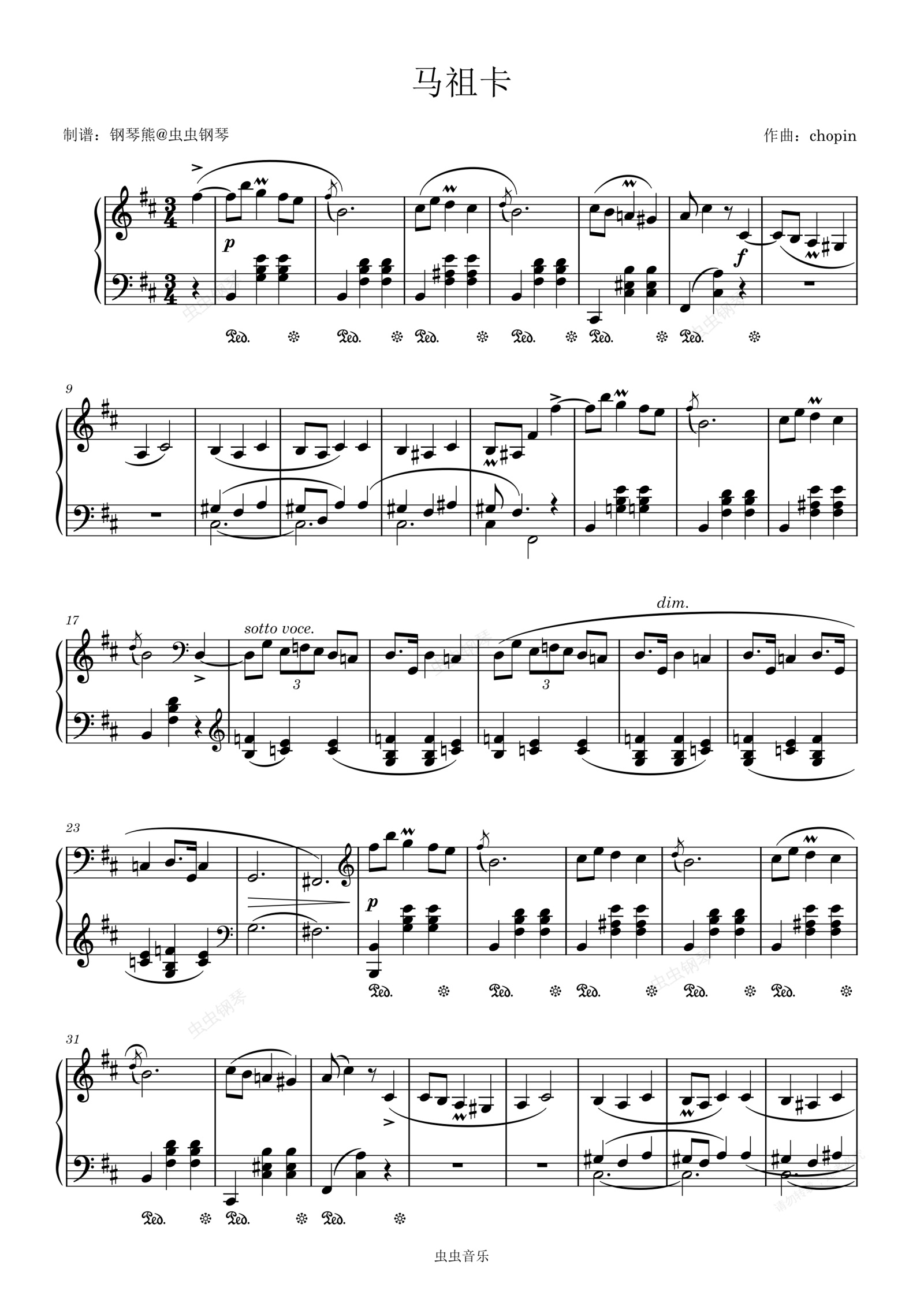 钢琴谱:肖邦 马祖卡 chopin.op.33 no.4