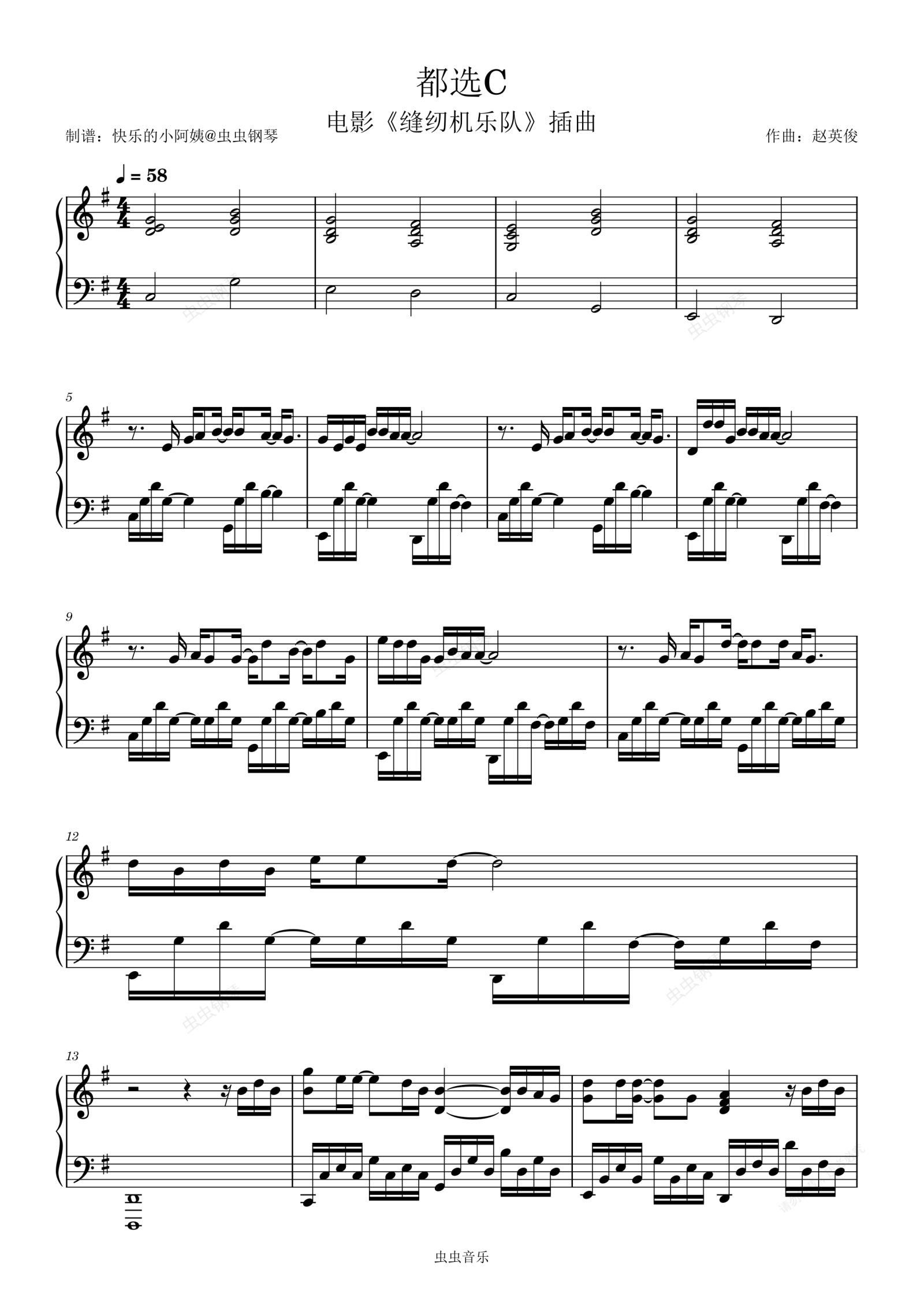 钢琴谱:都选C(缝纫机乐队 插曲)