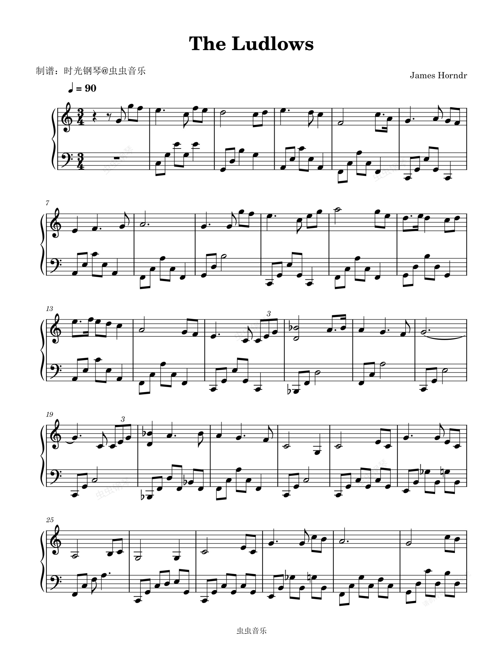 钢琴谱:The Ludlows 燃情岁月 简单动听
