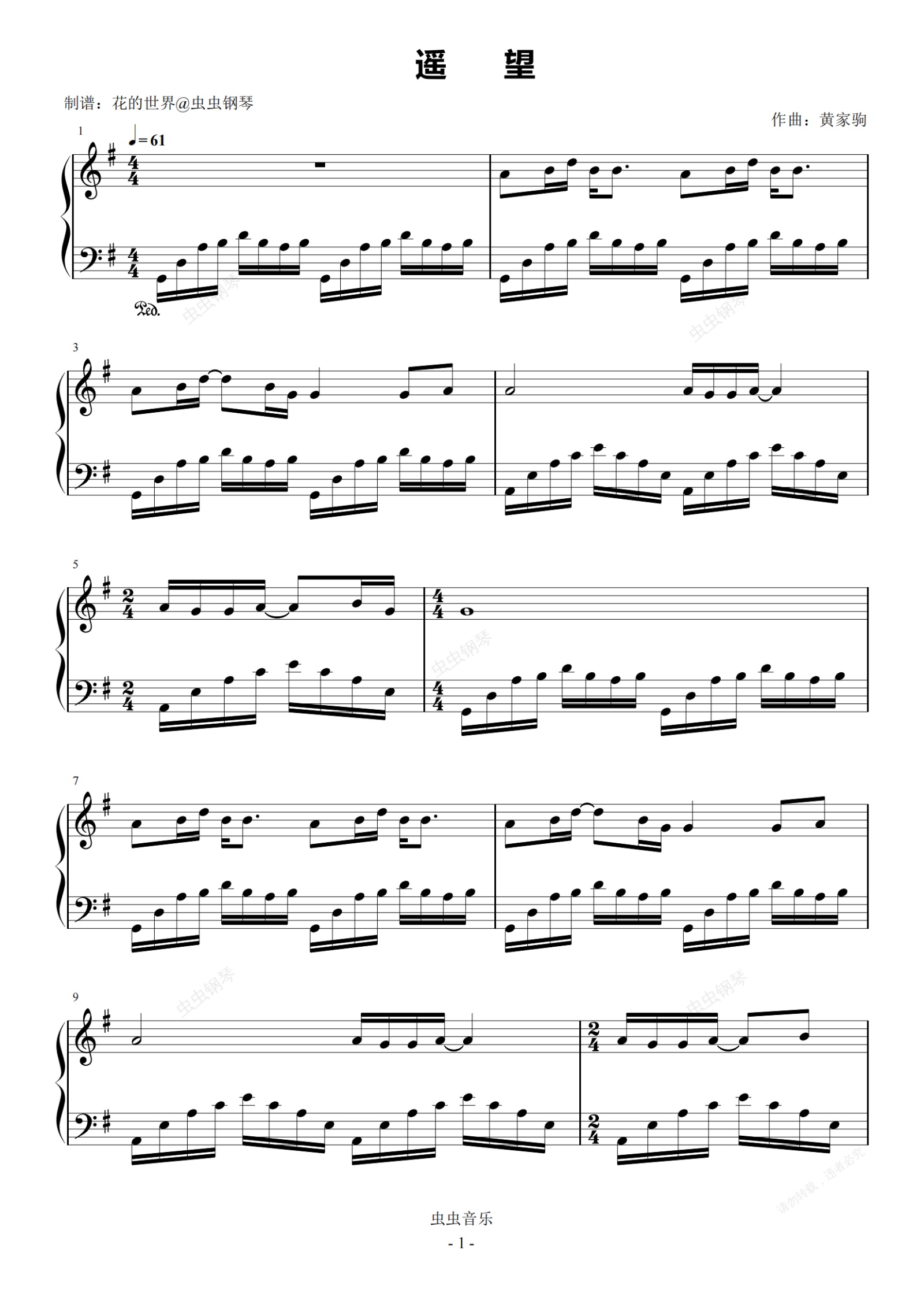 钢琴谱:遥望 原调简易版 beyond黄家驹 流行经典