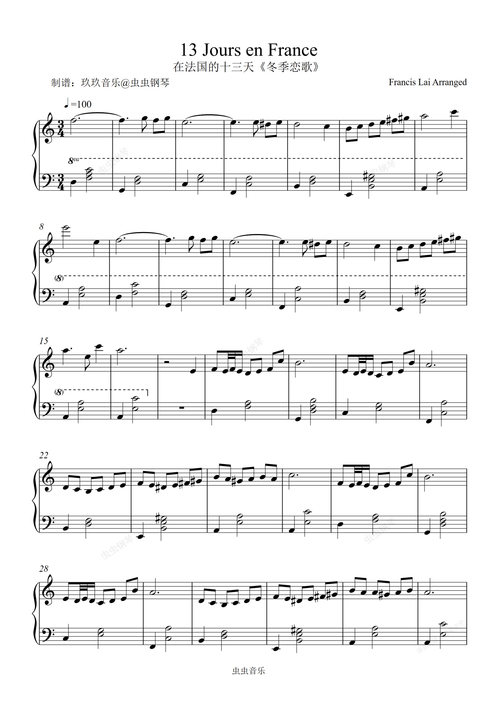 钢琴谱:13 Jours en France—Francis Lai Arranged