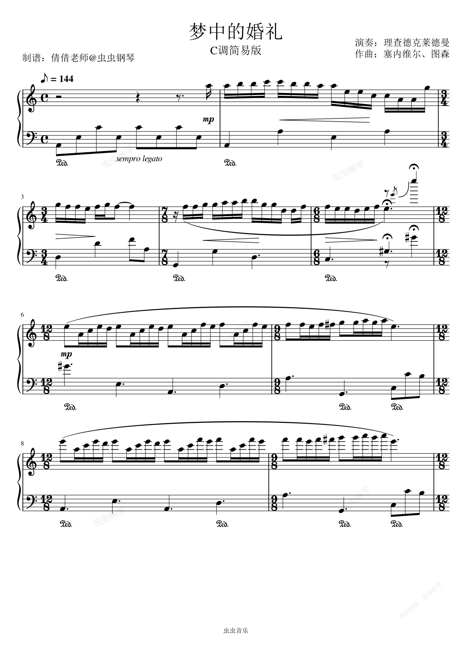 钢琴谱:梦中的婚礼-C调简易版-理查德克莱德曼