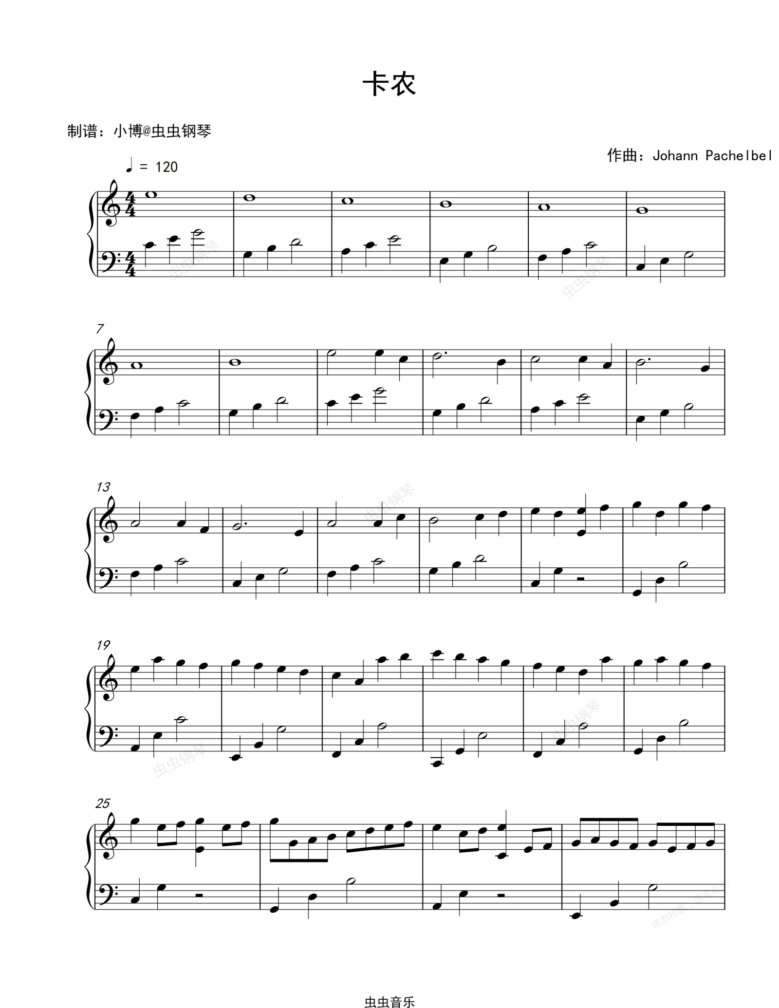 钢琴谱:卡农-Canon-C大调初学者版-Johann Pachelbel