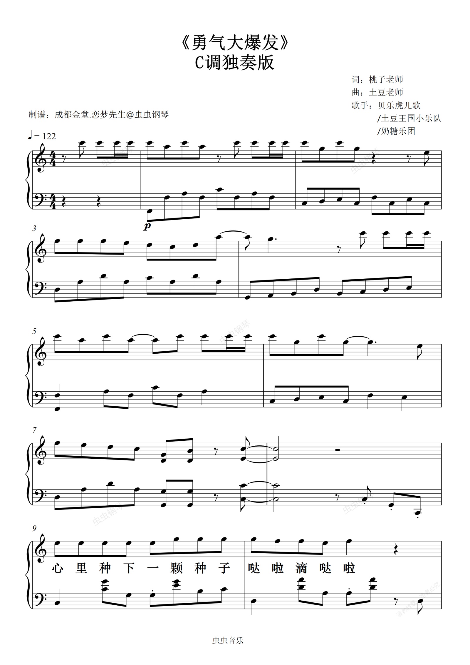 钢琴谱:《勇气大爆发》 C调独奏版-附歌词