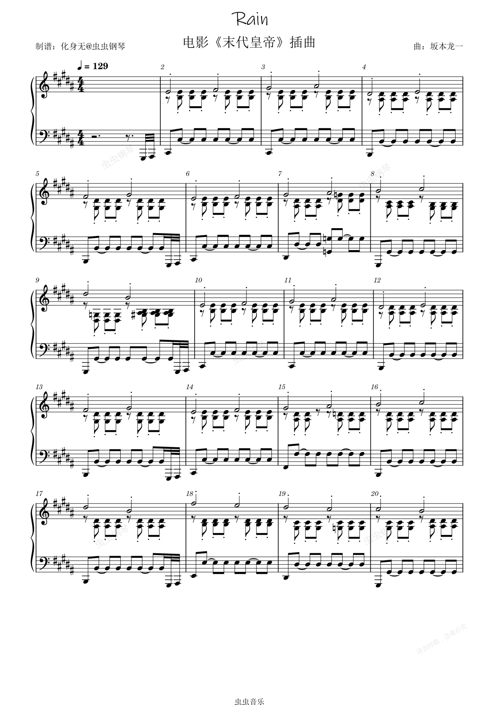 钢琴谱:Rain 电影《末代皇帝》插曲 坂本龙一