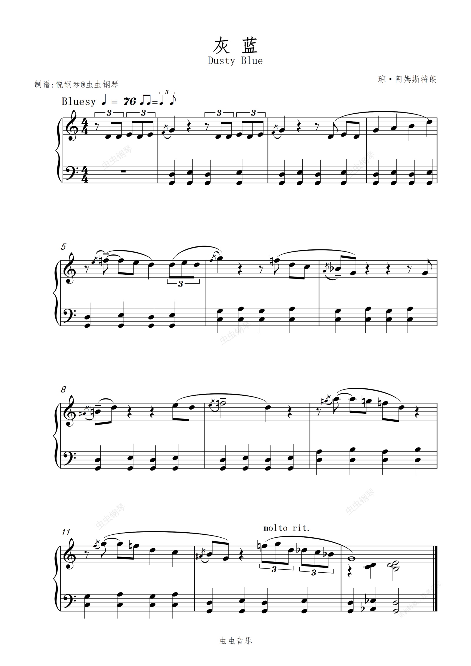 钢琴谱:灰蓝(免费乐谱)【爵士小曲-超好听】