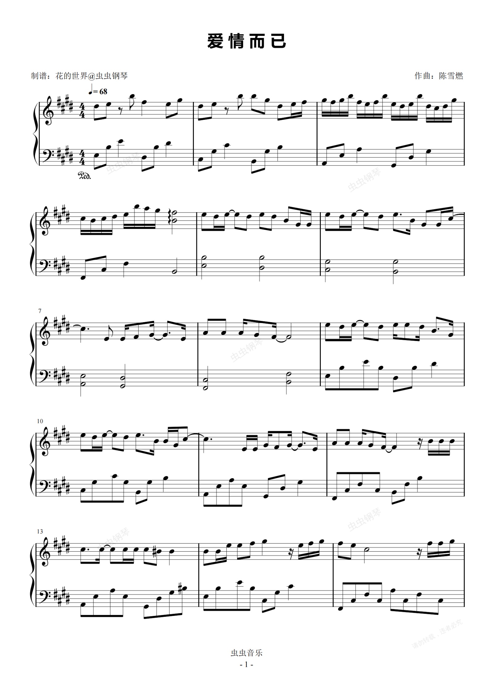 钢琴谱:爱情而已 原调简易版 杨丞琳