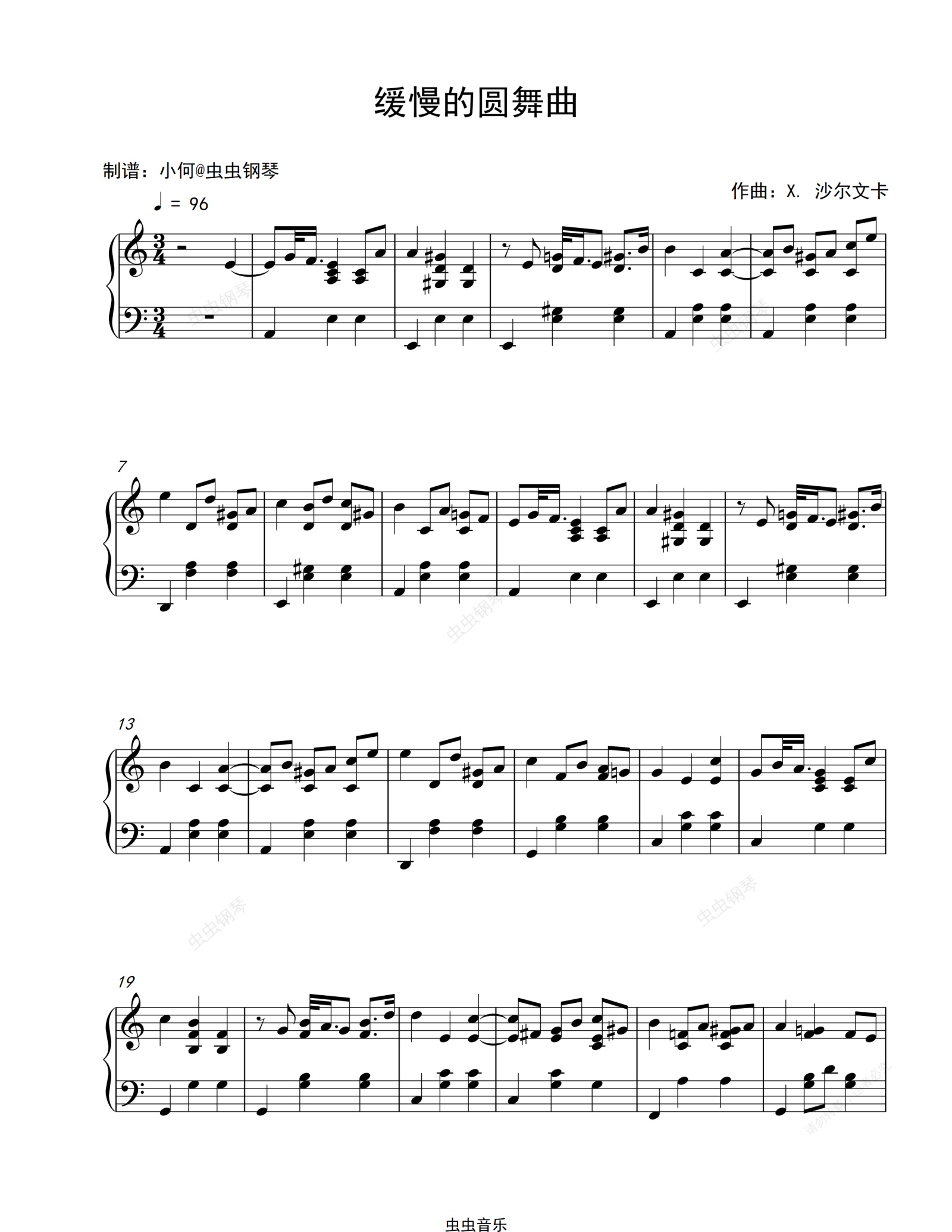 钢琴谱:缓慢的圆舞曲-X. 沙尔文卡