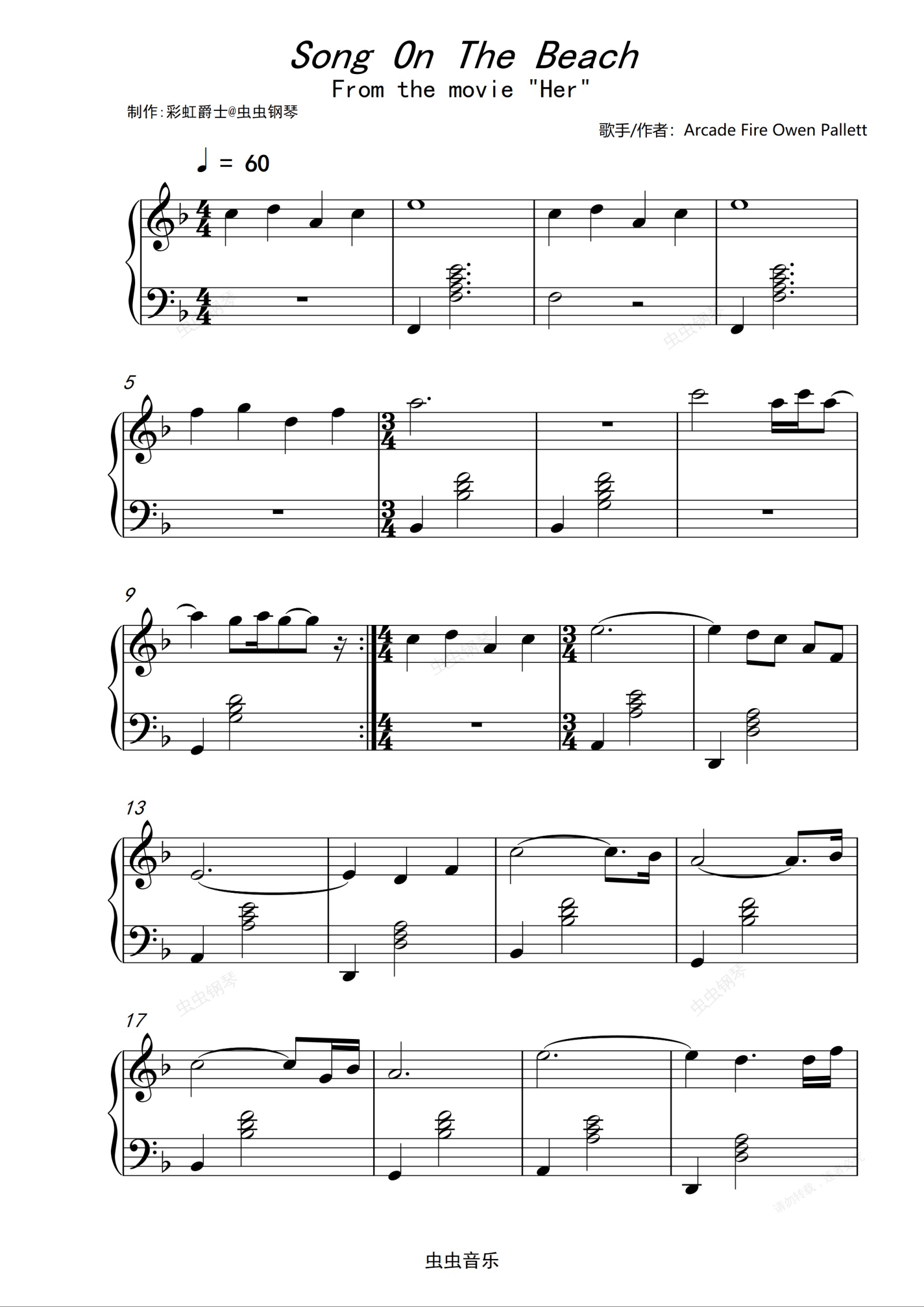 钢琴谱:Song on the Beach-电影她插曲 好听版