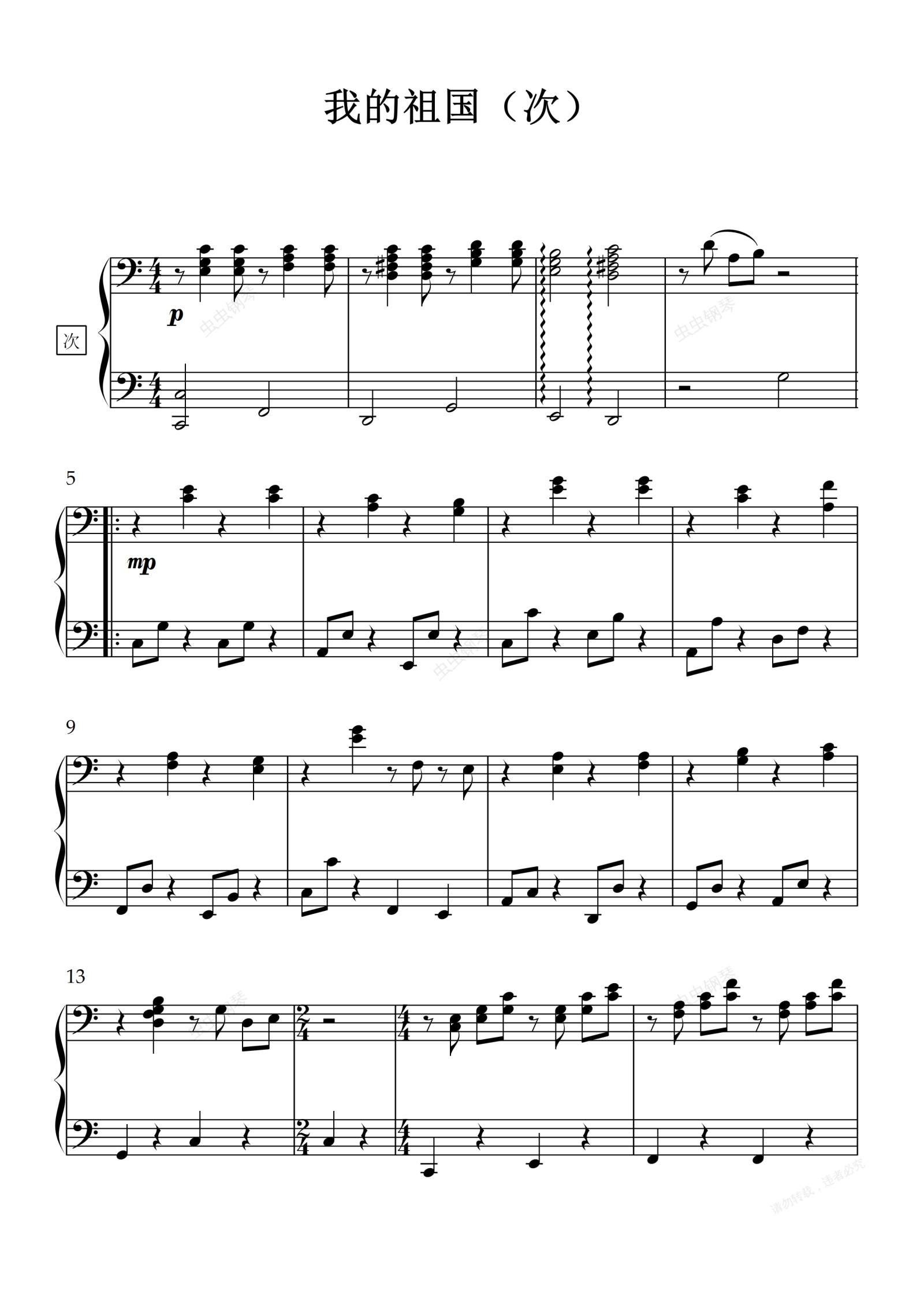 钢琴谱:我的祖国(次)