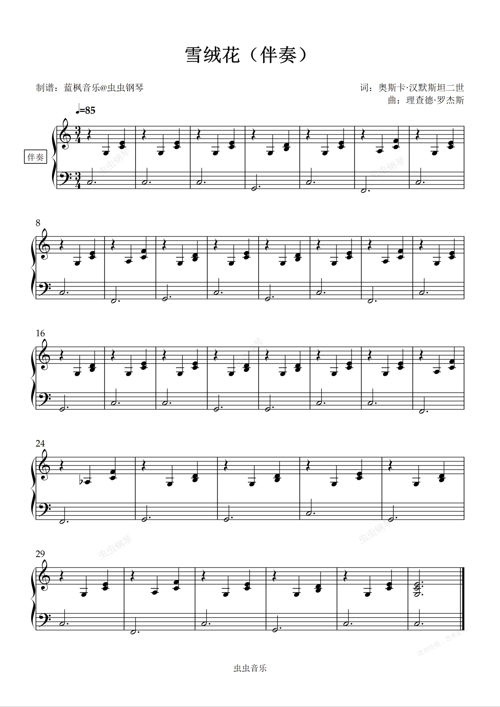 钢琴谱:雪绒花(伴奏)