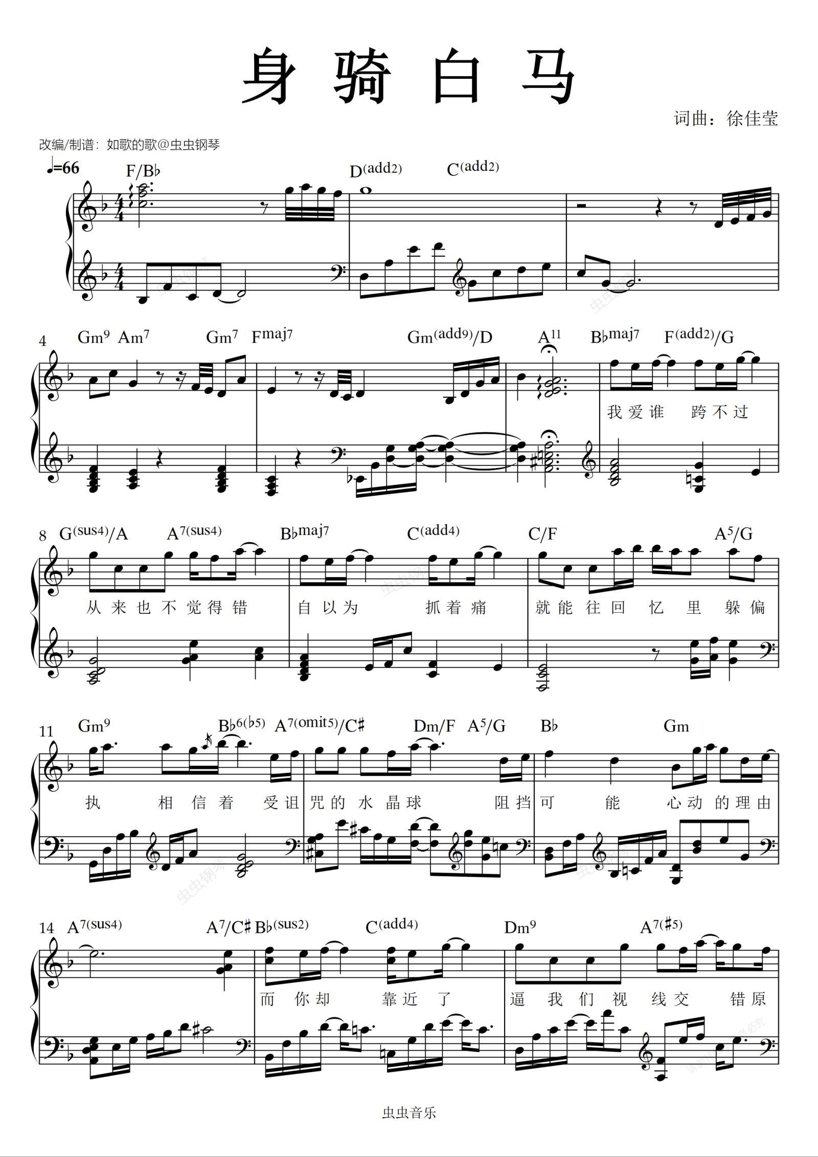 钢琴谱:《身骑白马》徐佳莹原调复刻独奏版