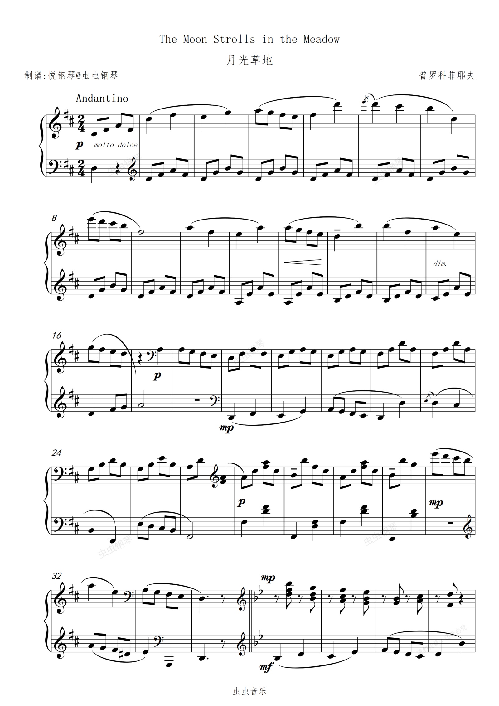 钢琴谱:月光草地【唯美】