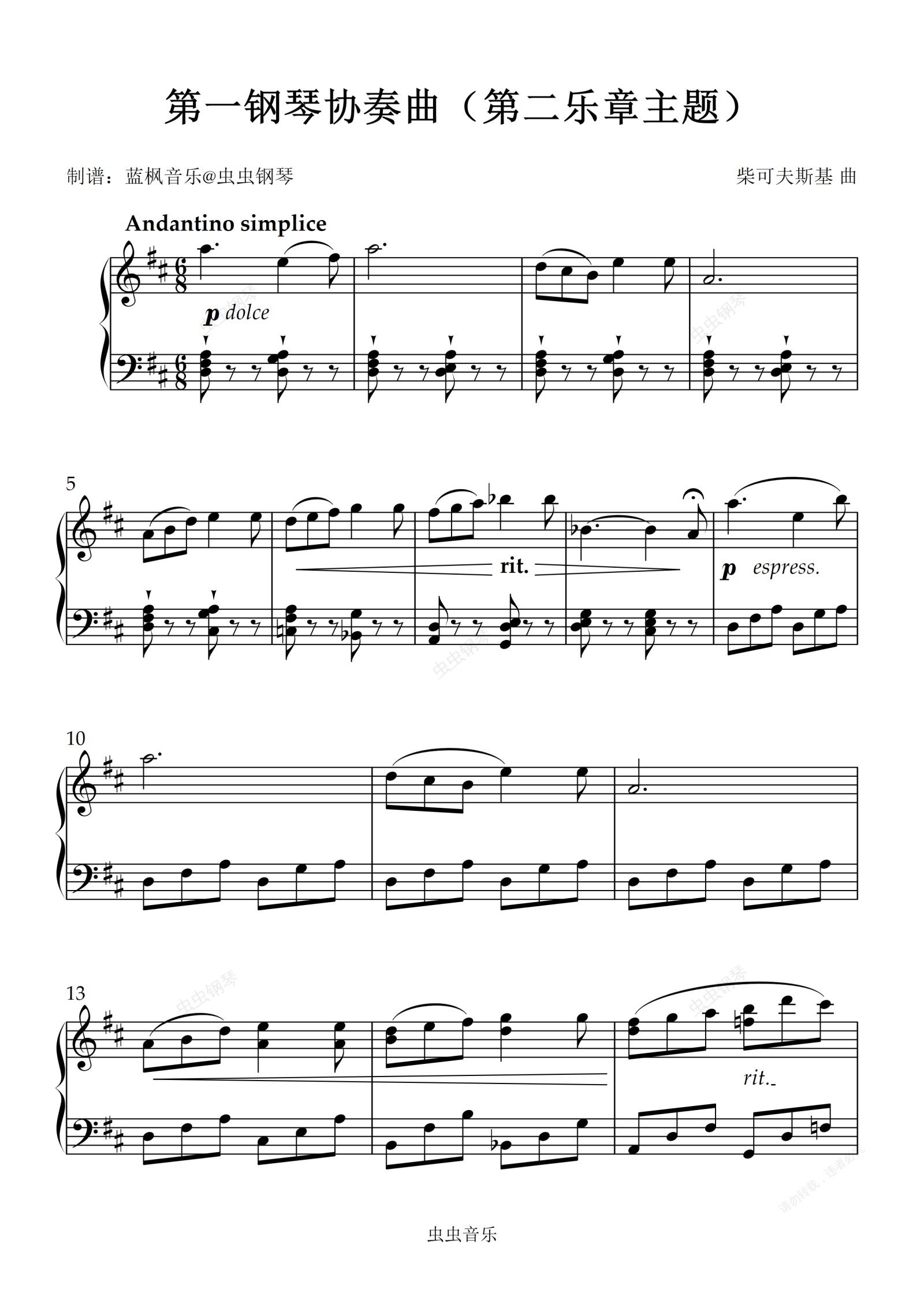 钢琴谱:10-3. 第一钢琴协奏曲(第二乐章主题)