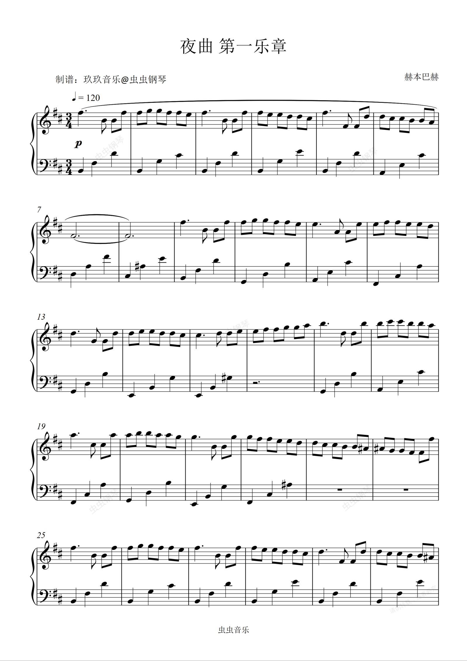 钢琴谱:夜曲 第一乐章—赫本巴赫