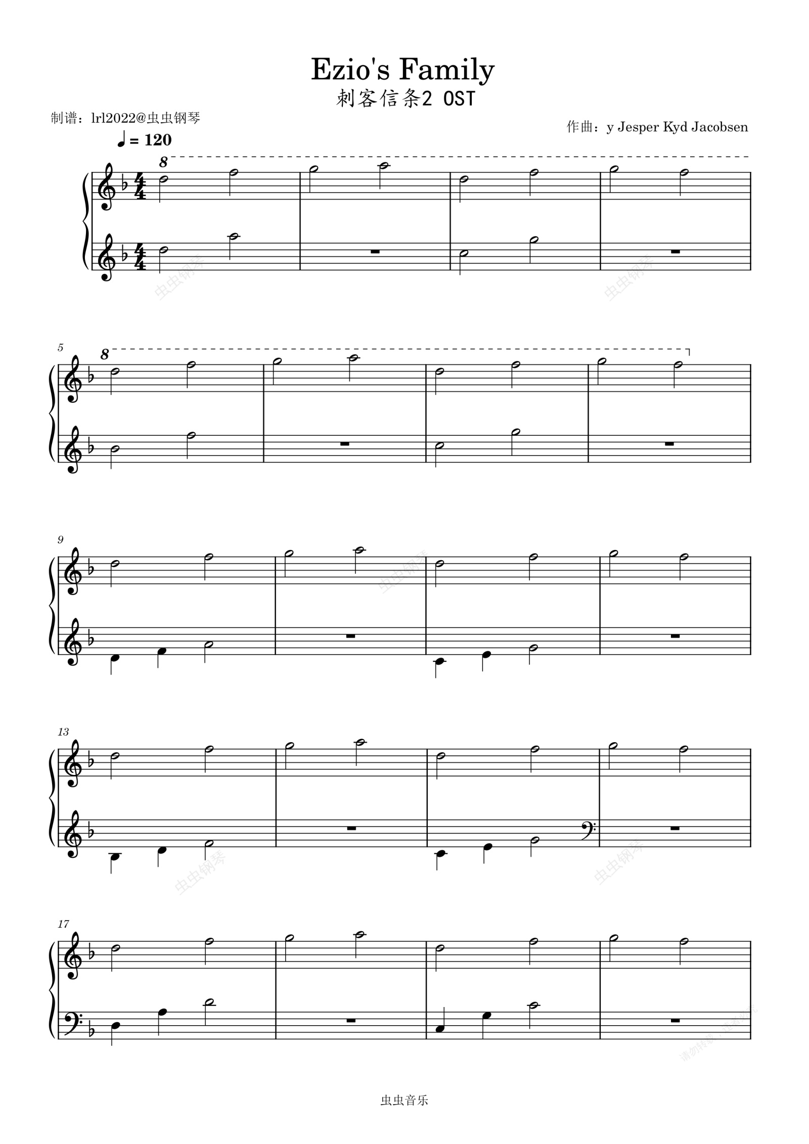 钢琴谱:Ezio's Family - 刺客信条2 OST - 独奏谱