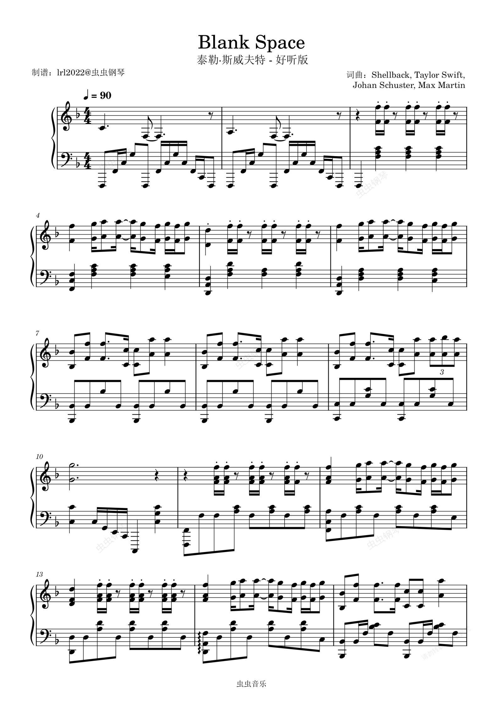 钢琴谱:Blank Space-好听版-Taylor Swift