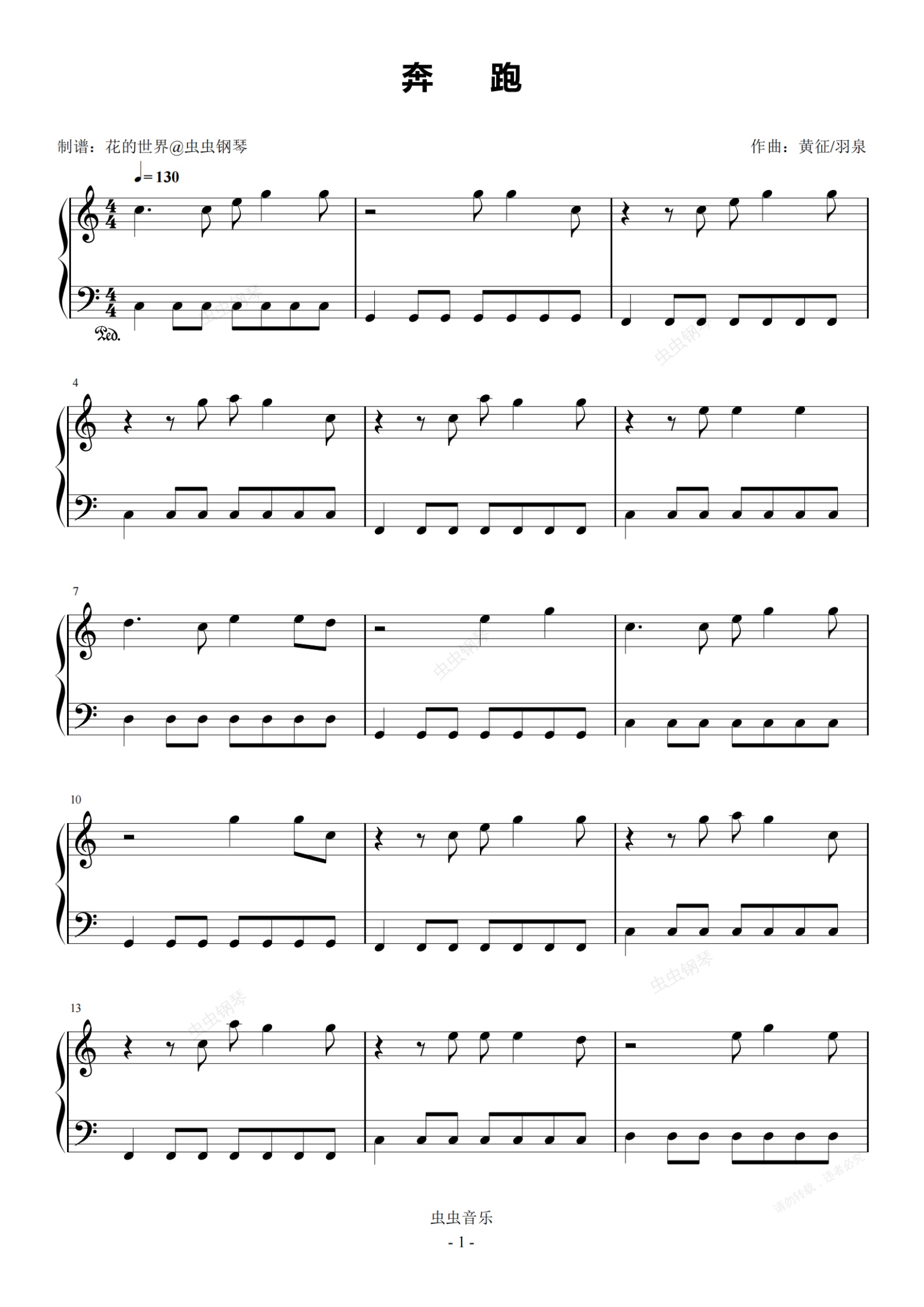 钢琴谱:奔跑 C调简易版 黄征/羽泉