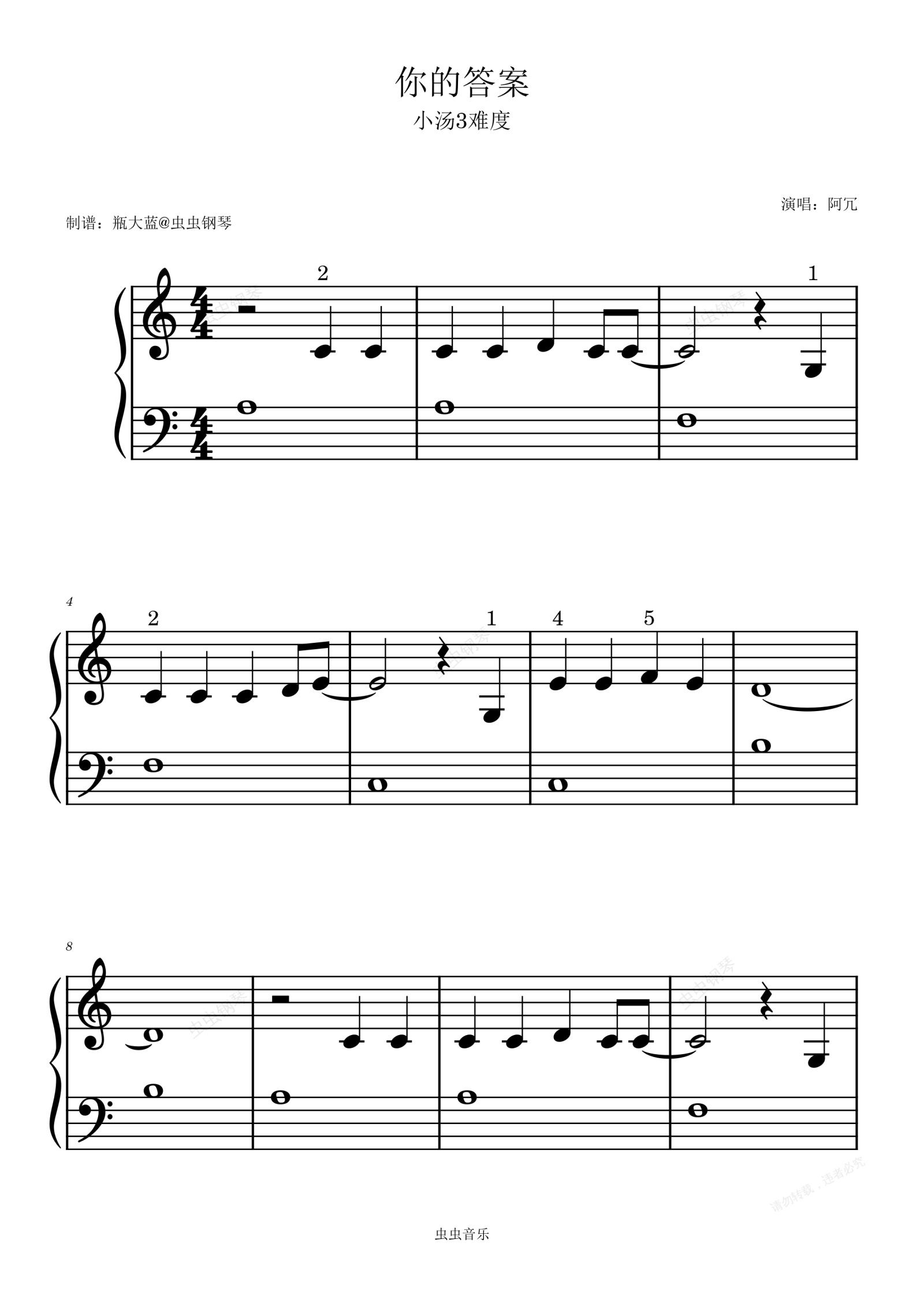 钢琴谱:《你的答案》-小汤3难度