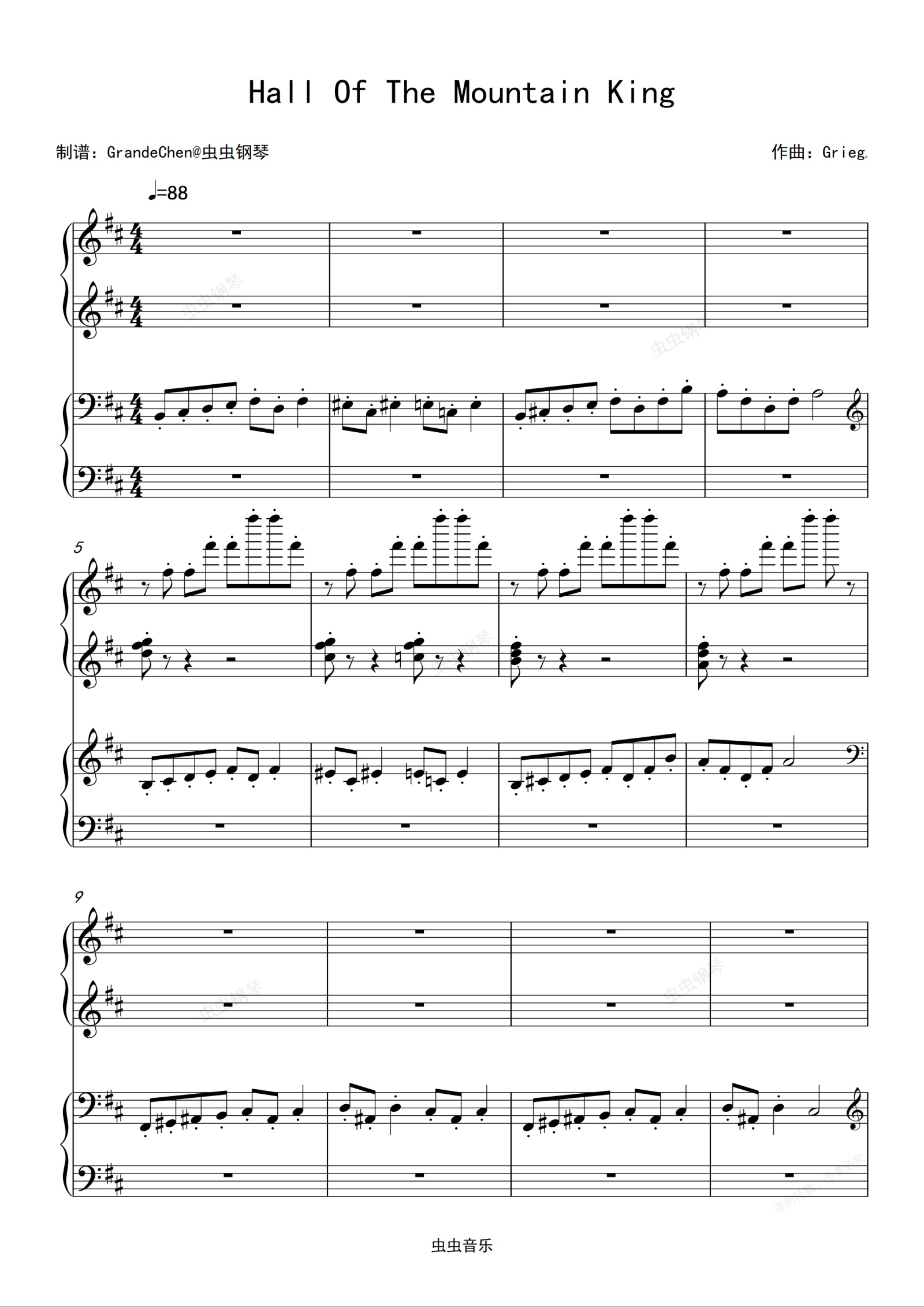 钢琴谱:在山魔王的宫殿里马克西姆版四手联弹简单难度