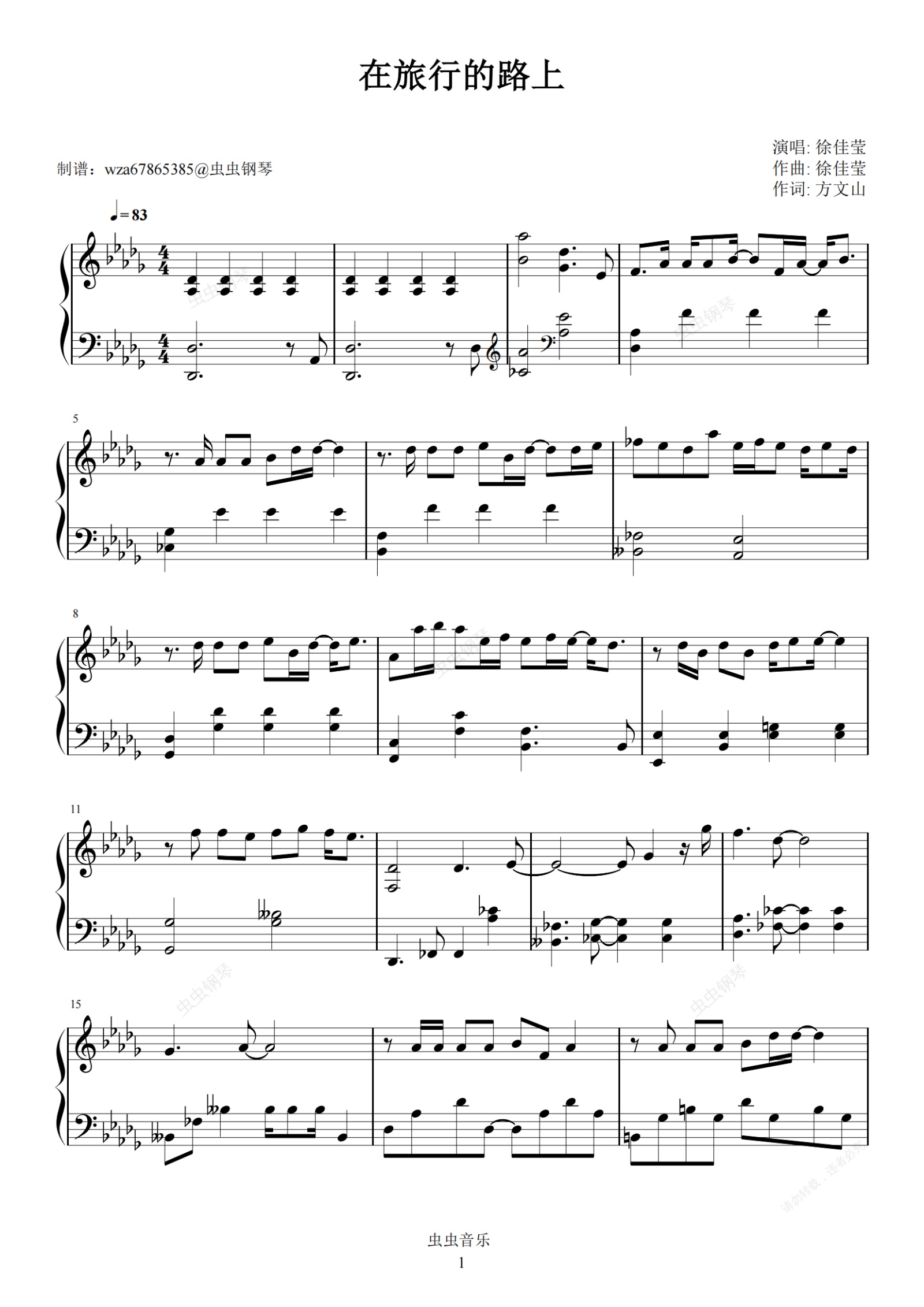 钢琴谱:在旅行的路上