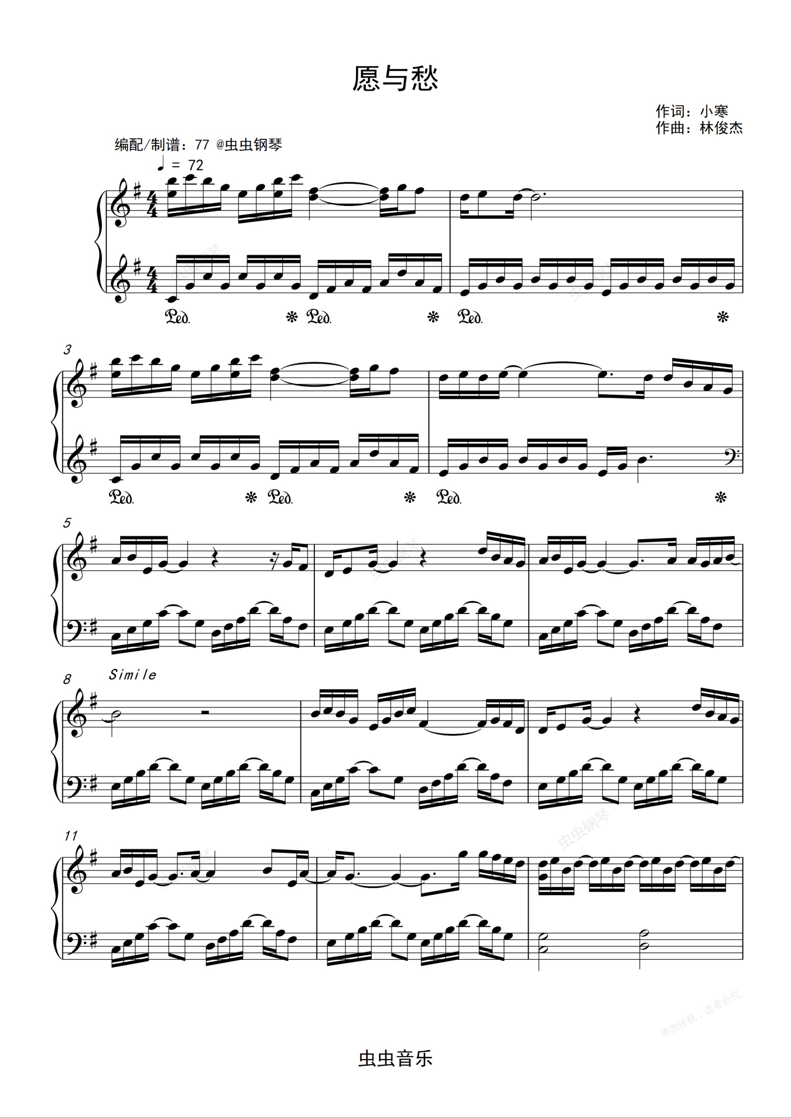 钢琴谱:林俊杰-《愿与愁》钢琴独奏