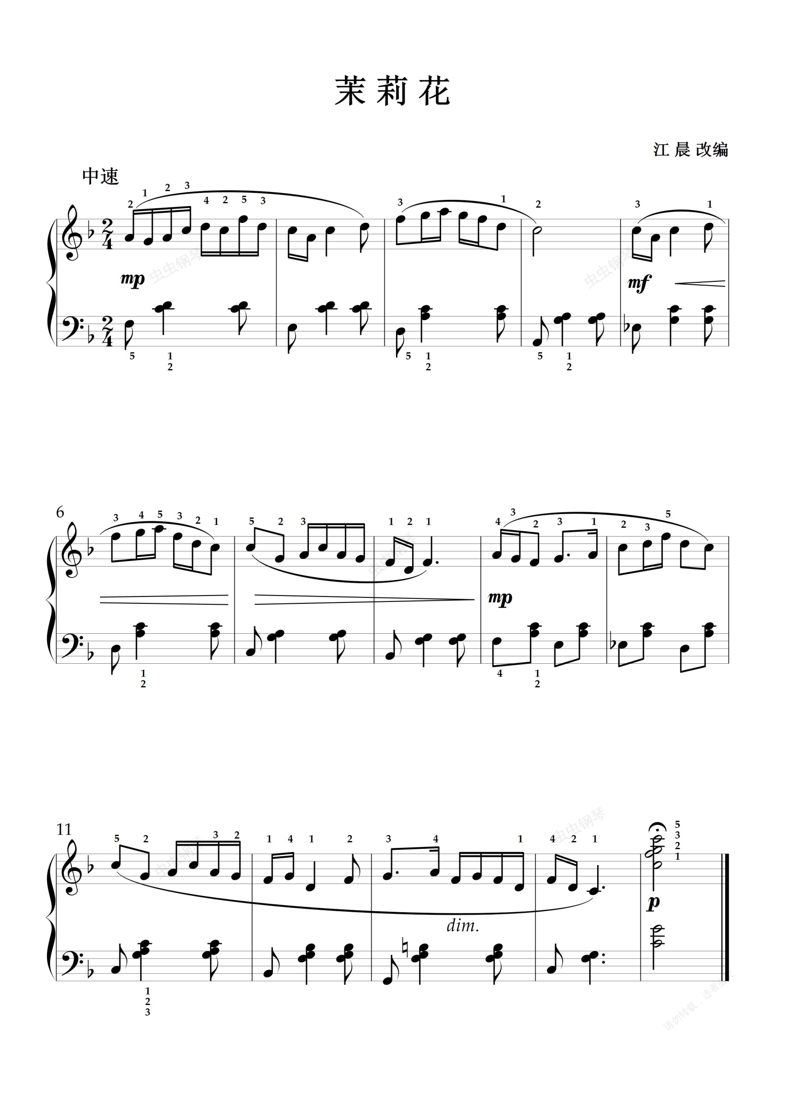 钢琴谱:茉莉花 上海音乐学院考级3级
