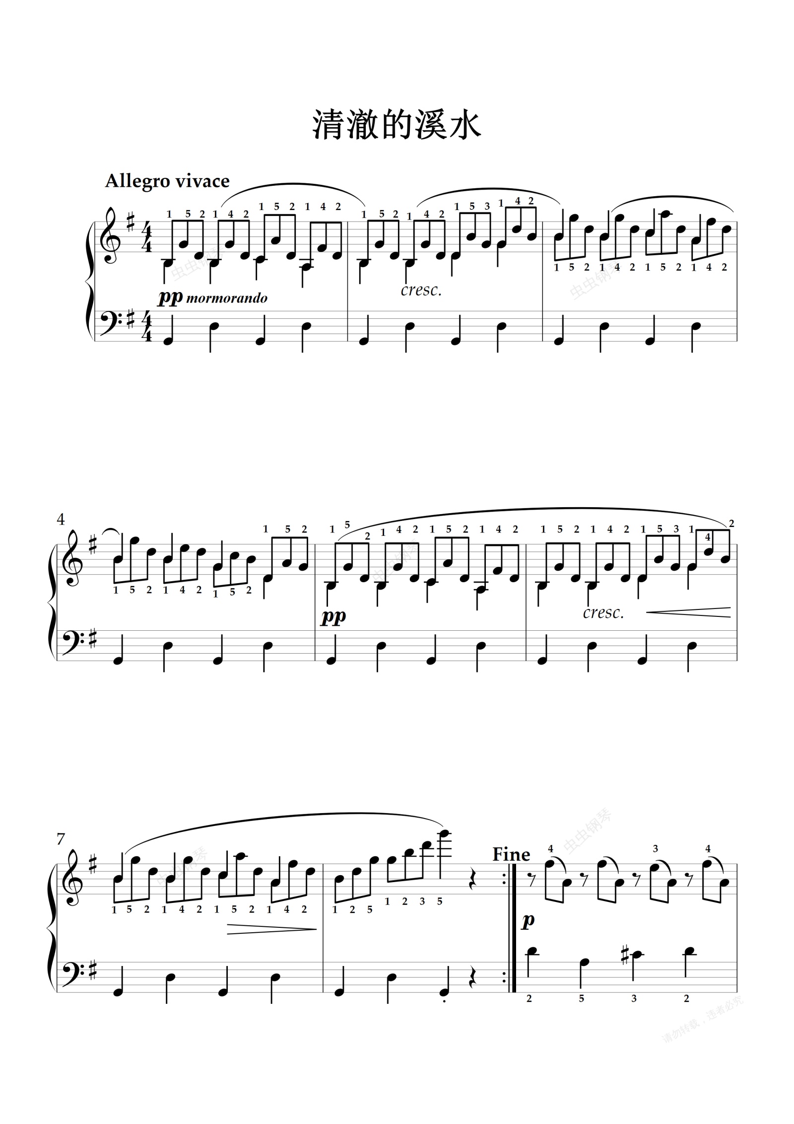 钢琴谱:清澈的溪水 上海音乐学院考级3级