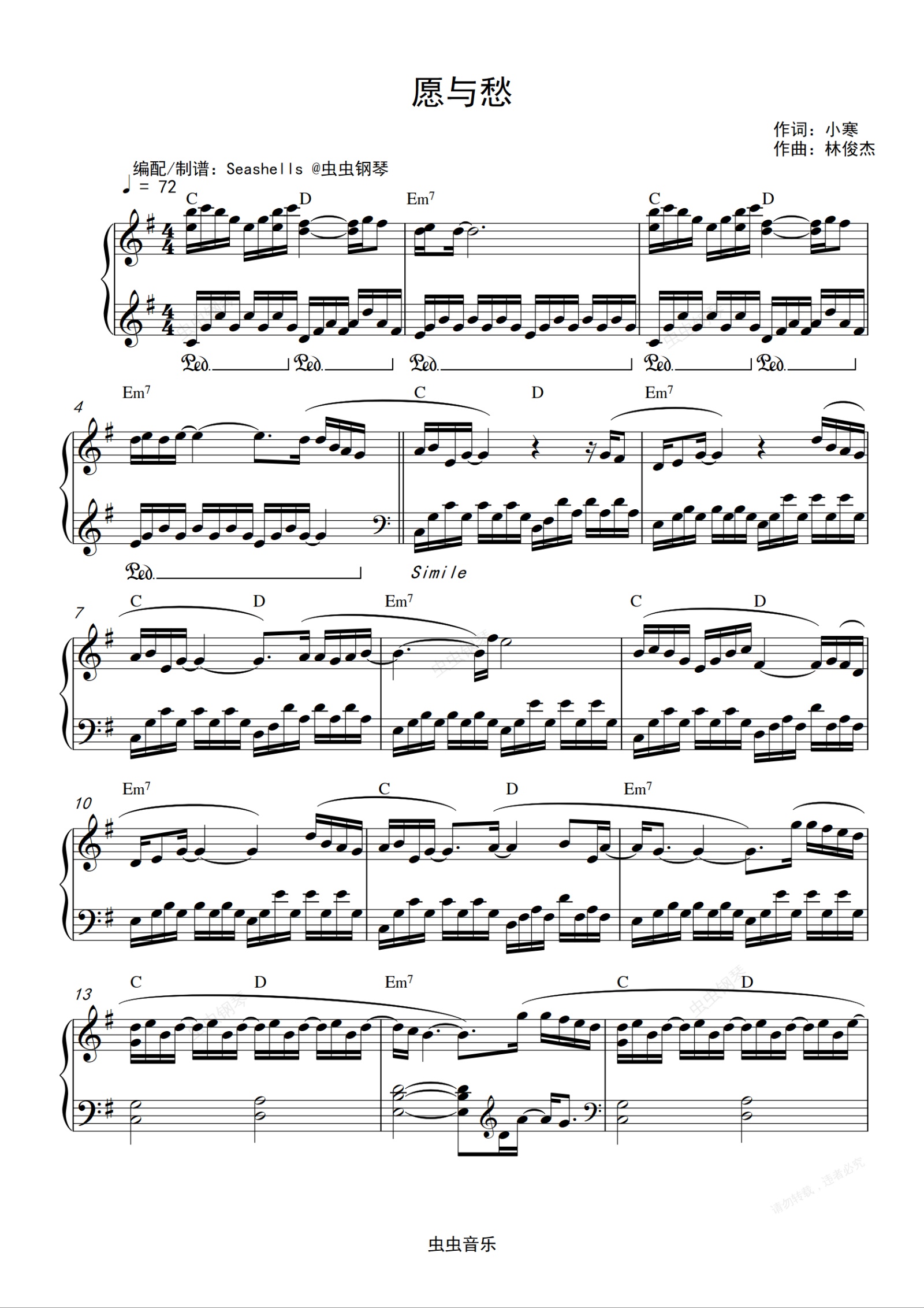 钢琴谱:林俊杰-《愿与愁》精编钢琴独奏