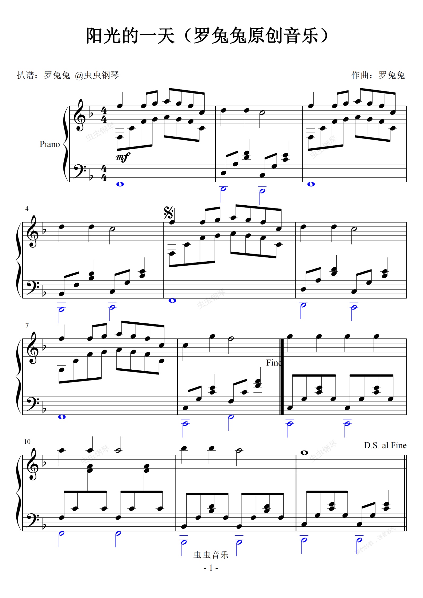 钢琴谱:阳光的一天(罗兔兔原创音乐)