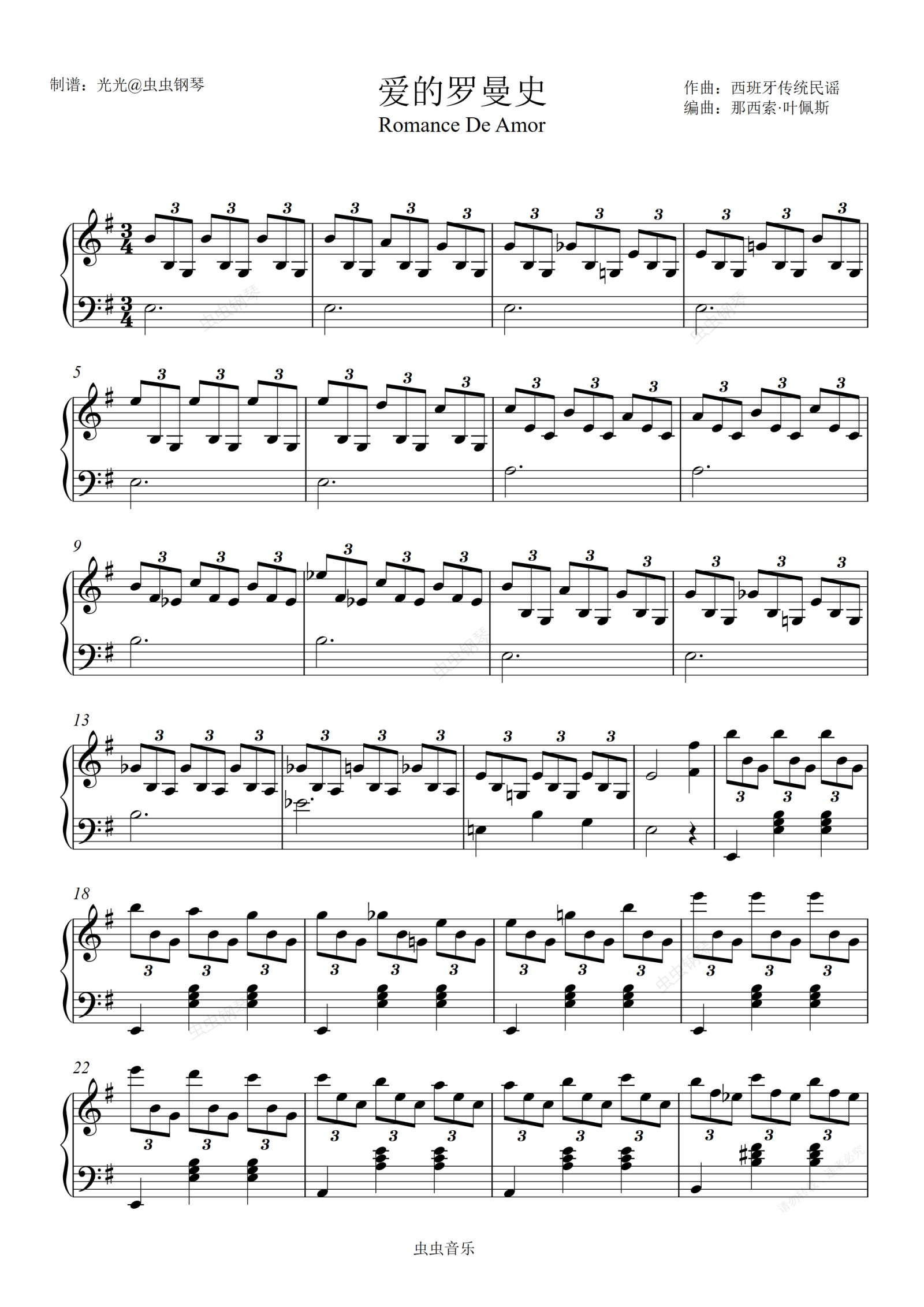 钢琴谱:爱的罗曼史(Romance De Amor)