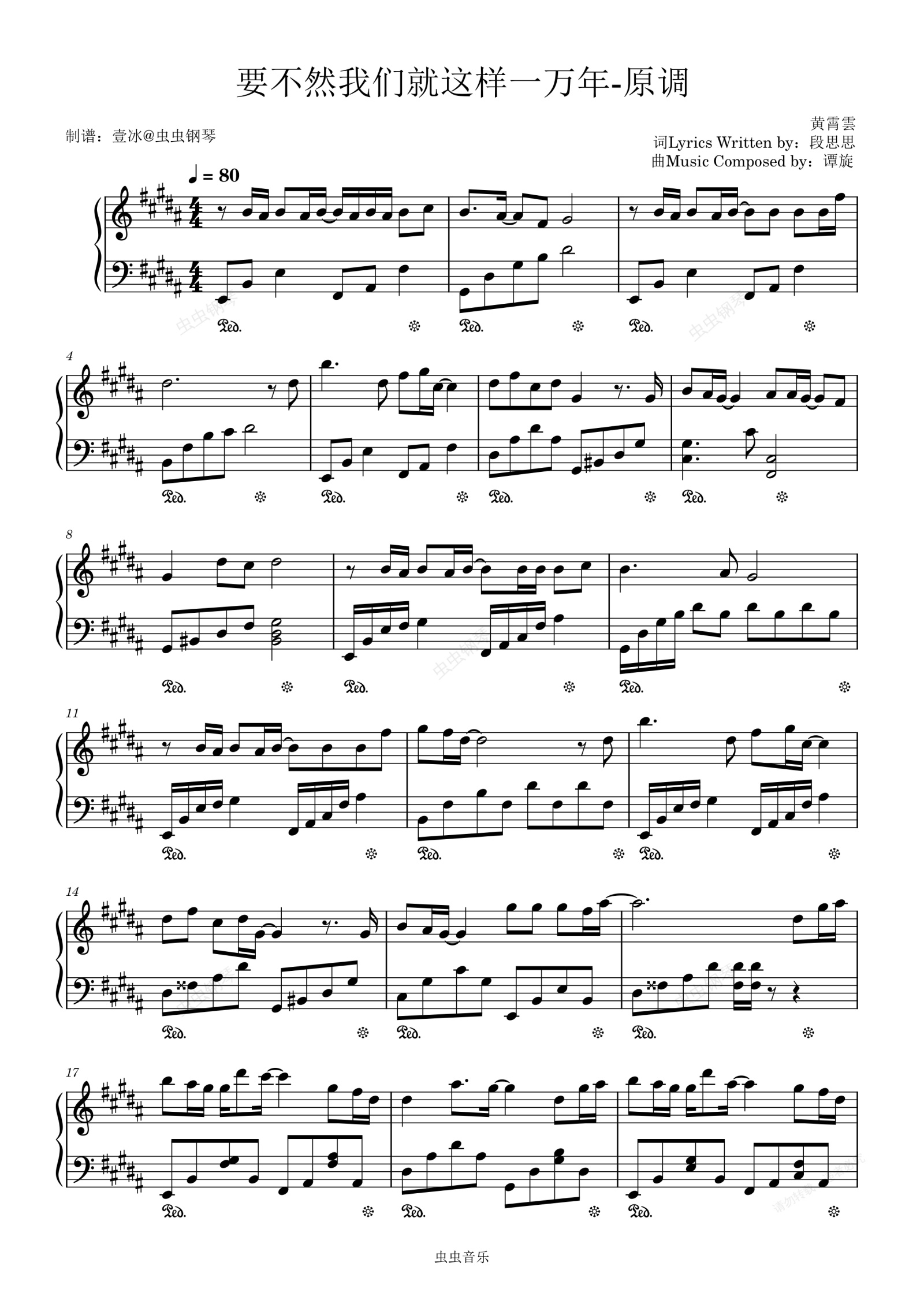钢琴谱:要不然我们就这样一万年//《长月烬明》插曲-原调