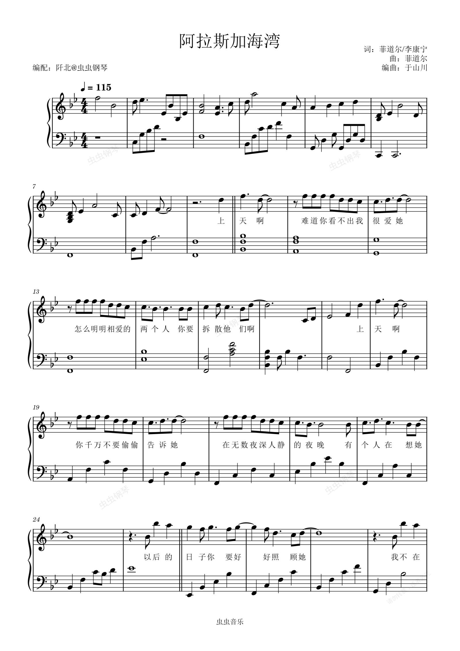 钢琴谱:【免费】《阿拉斯加海湾》蓝心羽