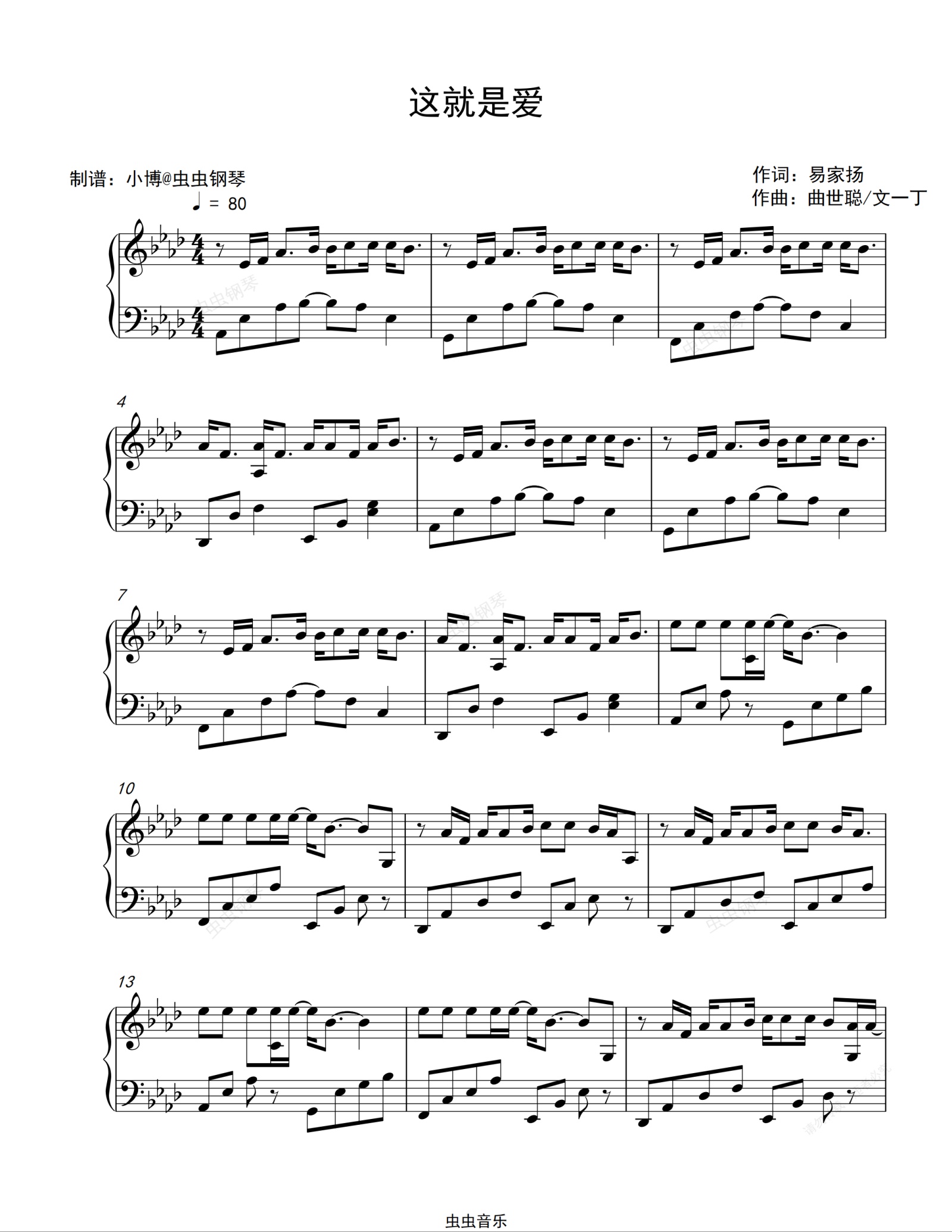 钢琴谱:这就是爱-张杰