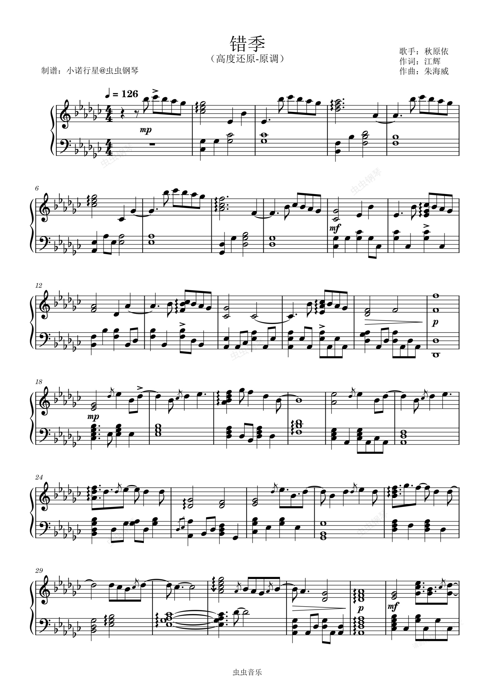 钢琴谱:错季-华丽高燃 原调钢琴独奏