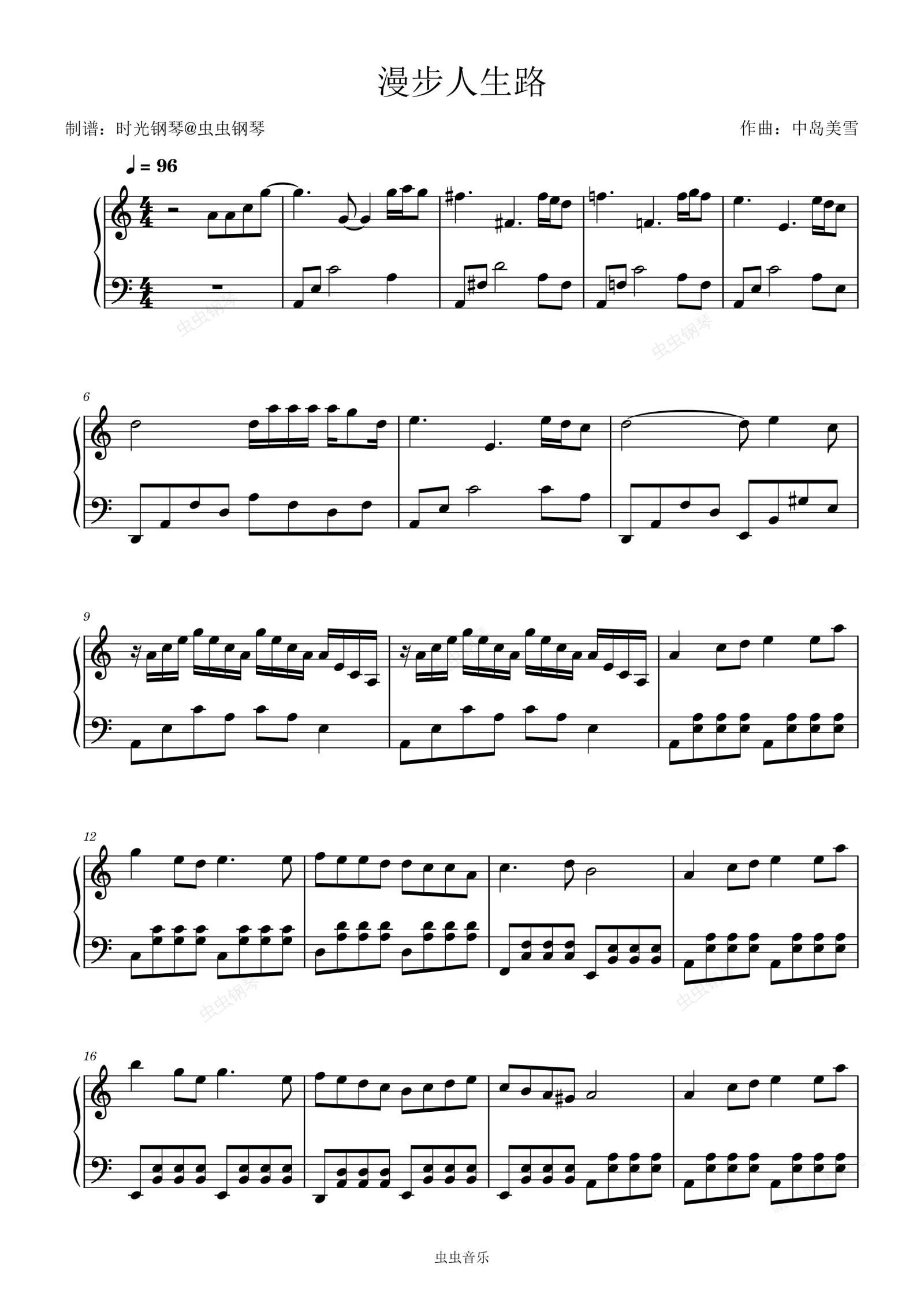 钢琴谱:漫步人生路  邓丽君  简单动听