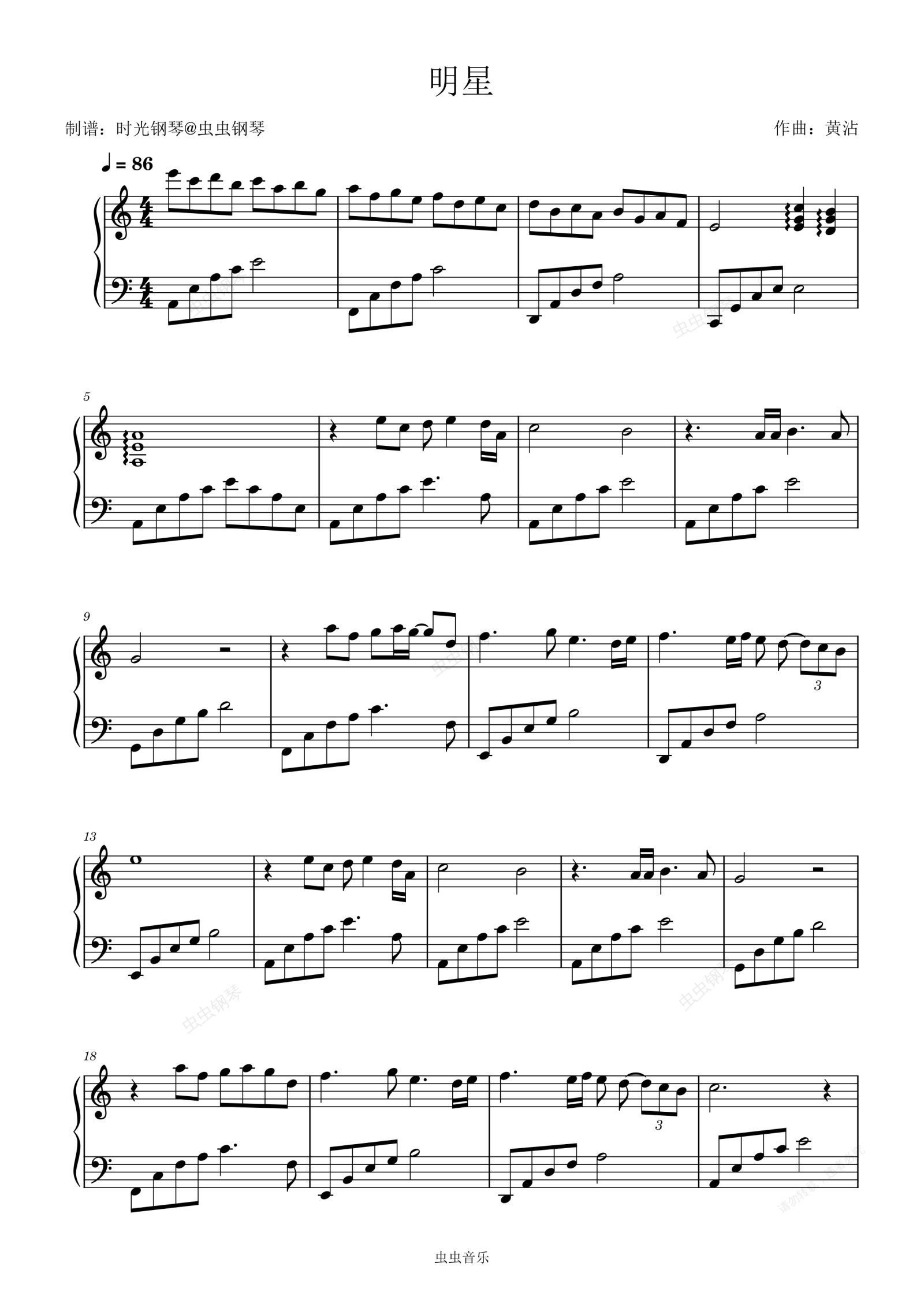钢琴谱:明星 张国荣 简单动听