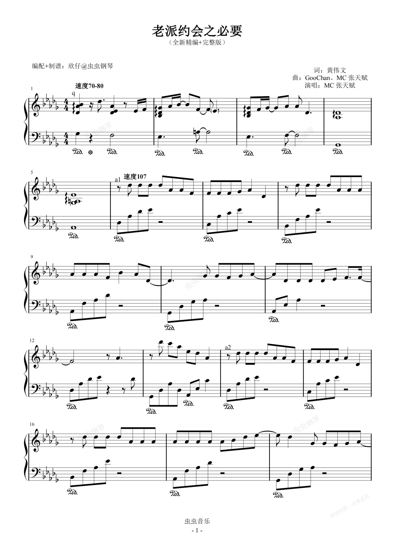 钢琴谱:张天赋-降D-降B《老派约会之必要》(全新精编+完整版)