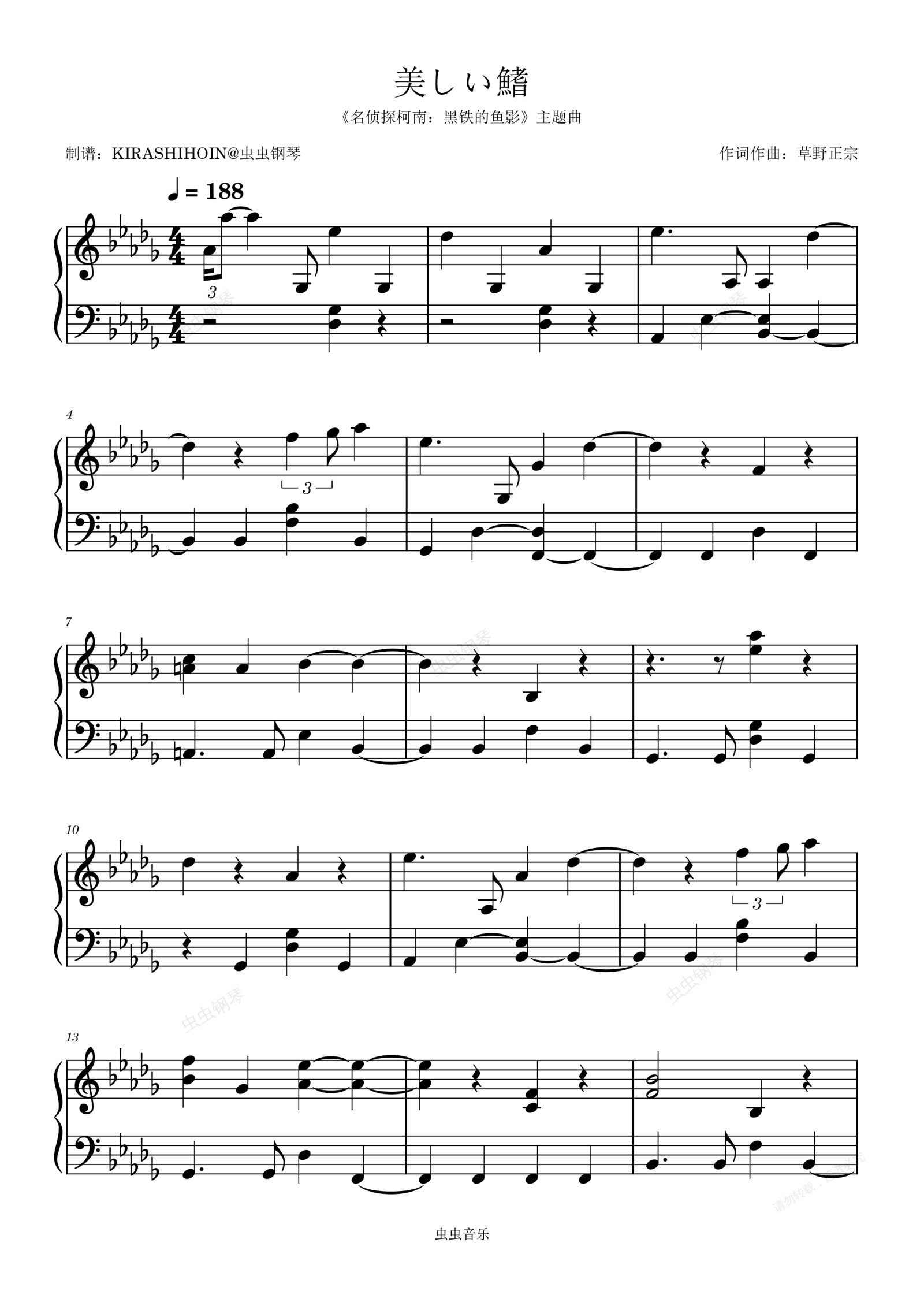 钢琴谱:美しい鰭(《名侦探柯南:黑铁的鱼影》主题曲)- Spitz